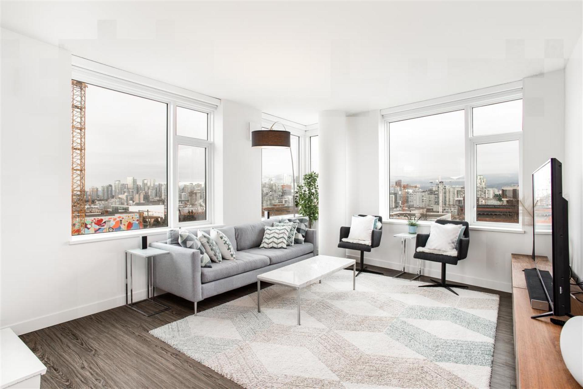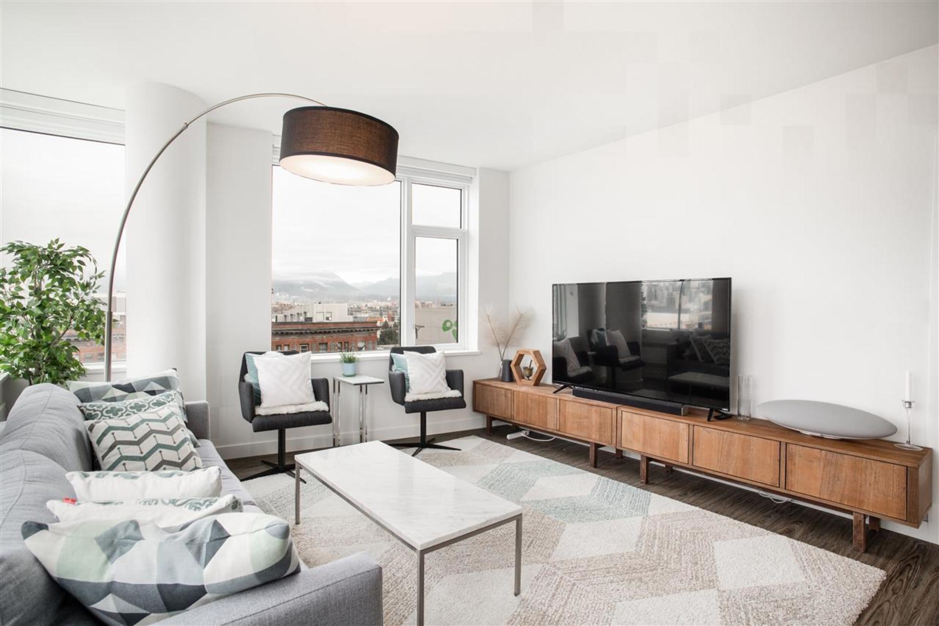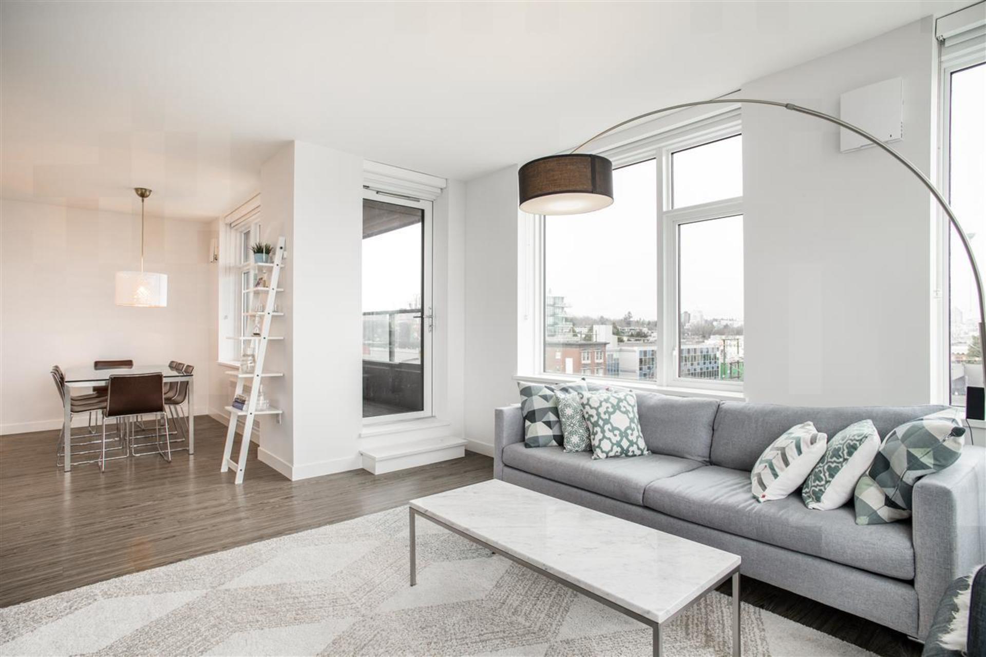 ELLSWORTH BY CHARD... the latest chapter in Mount Pleasant's storied history. This new boutique building is perfectly situated in the exciting Mount Pleasant neighbourhood, walking distance to the city's bests. This rare corner 3 bedroom and flex home features a sleek kitchen with top of the line FisherPaykel applainces - integrated frudge and gas burner cooktop, with plenty of storage. Enjoy impressive city and mountain views from all of the principal rooms and a super functional floorplan. The spa bathrooms must be seen to be appreciated! Includes 2 parking and 1 storage locker. The rooftop deck amenity is amazing! ***OPEN HOUSE: Saturday February 22 & Sunday February 23 2-4PM***