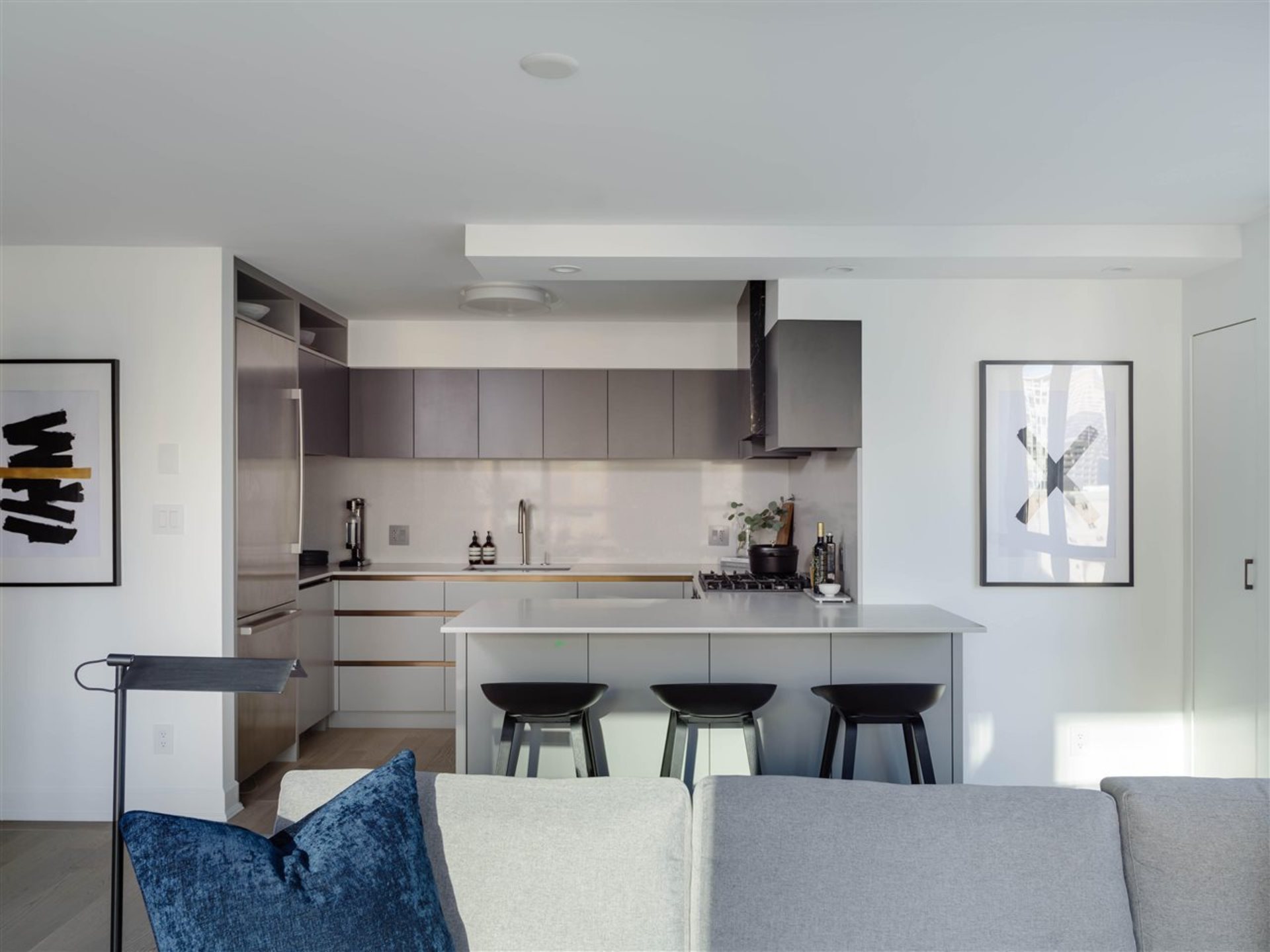 A HOME WORTHY OF THE COVER OF ARCHITECTURAL DIGEST - be the envy of all your friends. This stunning home has been meticulously redesigned guided by the principals of timeless design and function. Main floor features an exquisite kitchen with custom two toned cabinetry with bronze reveals, sleek appliances, Caesarstone counters and backsplash and a black marble clad hood fan. The expansive living and dining rooms are punctuated by a custom fireplace with hearth and 16.5' double height windows that invite park, city and mountain views. A custom handrail and intricate wall paneling lead to the master suite with custom paneling, a relaxing lounge, fireplace and an en-suite to admire - double head rain shower, Caesaestone counters, terrazzo tiles, imported plumbing fixtures and walk in closet.