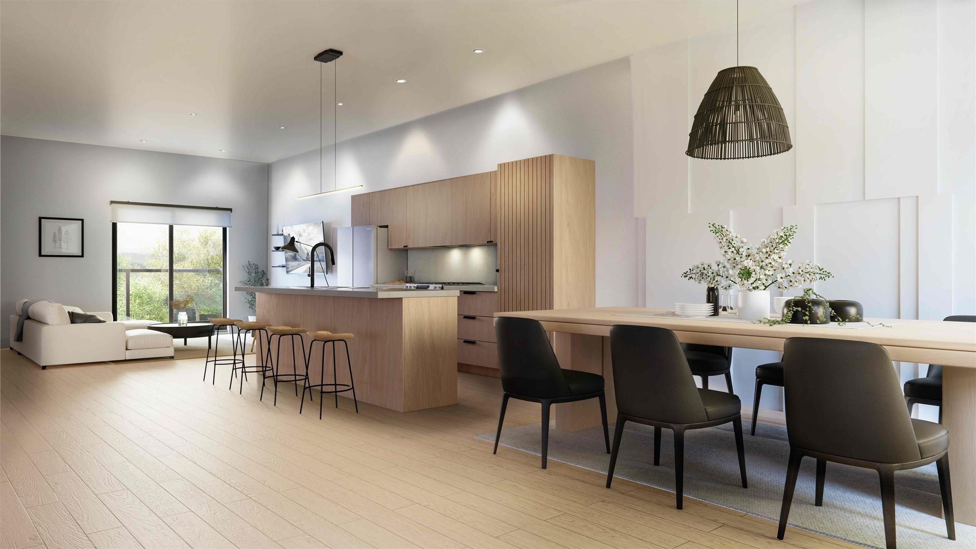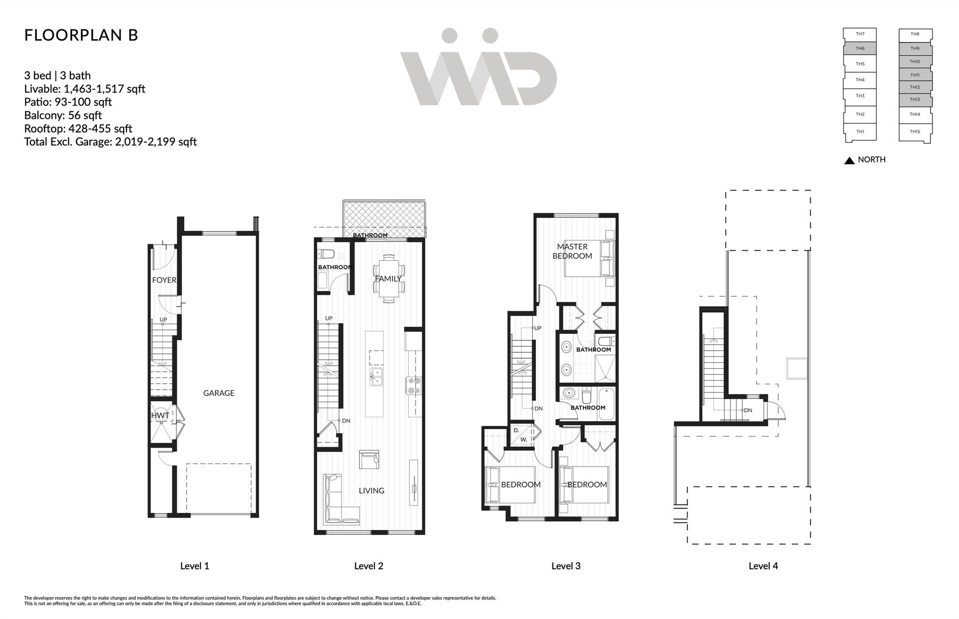 VIVID TOWNHOMES by AULUME PROPERTIES! A boutique collection of 15 3&4 bedroom contemporary townhomes with rooftop decks! This 3 bedroom townhome features an open concept kitchen with shaker cabinetry, large kitchen island with quart waterfall countertops, stainless steel appliances including gas range, flowing on durable laminate flooring into the spacious living and dining rooms. Appreciate 9' ceilings, forced air heating and air-conditioning throughout. Above is a primary suite with double vanity and 2 additional spacious bedroom. This home features a 428SF rooftop deck with gas hookup!! Completion estimated for June/July 2025. Purchase with only 10% deposit. All of this in a super convenient and quickly growing neighbourhood.