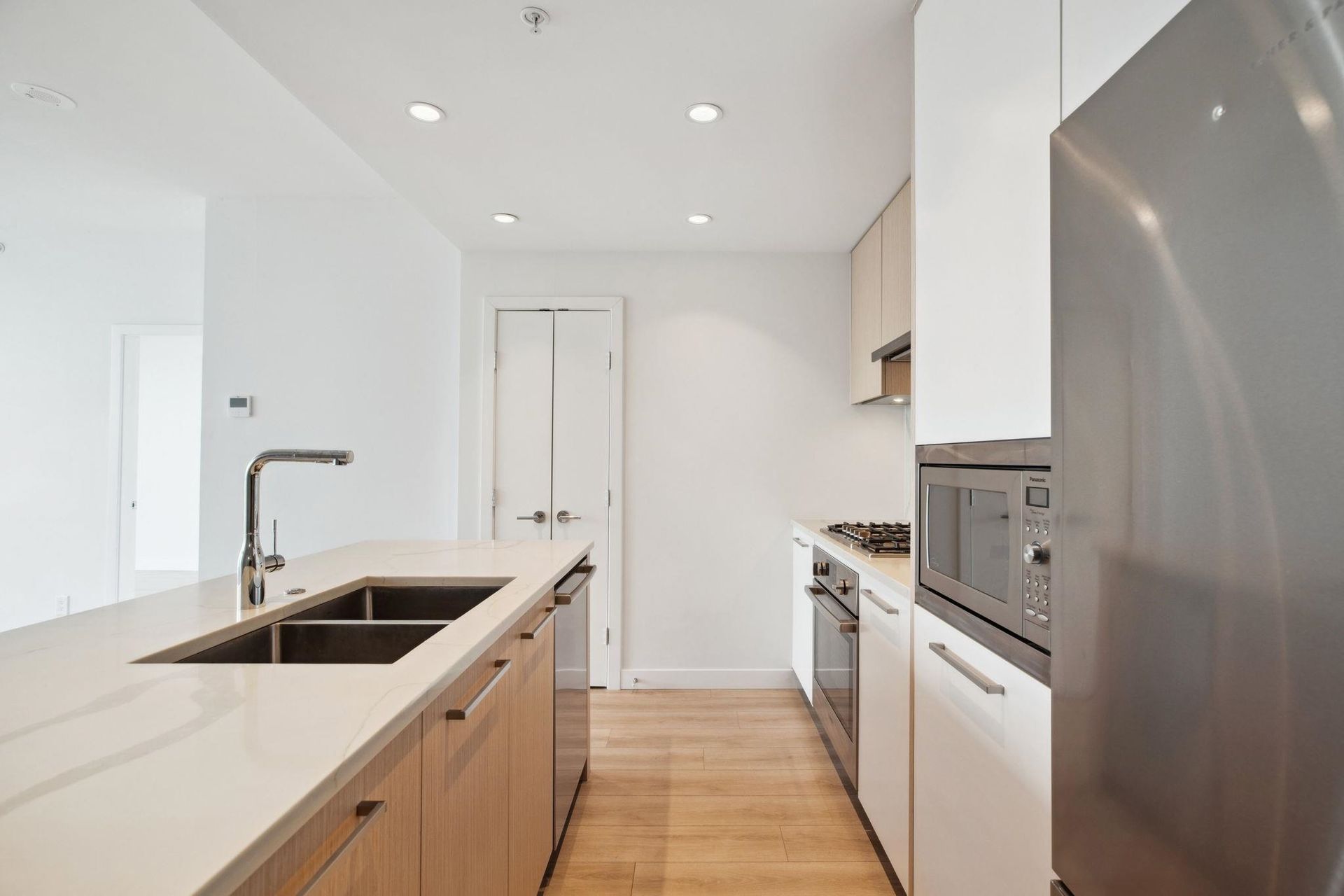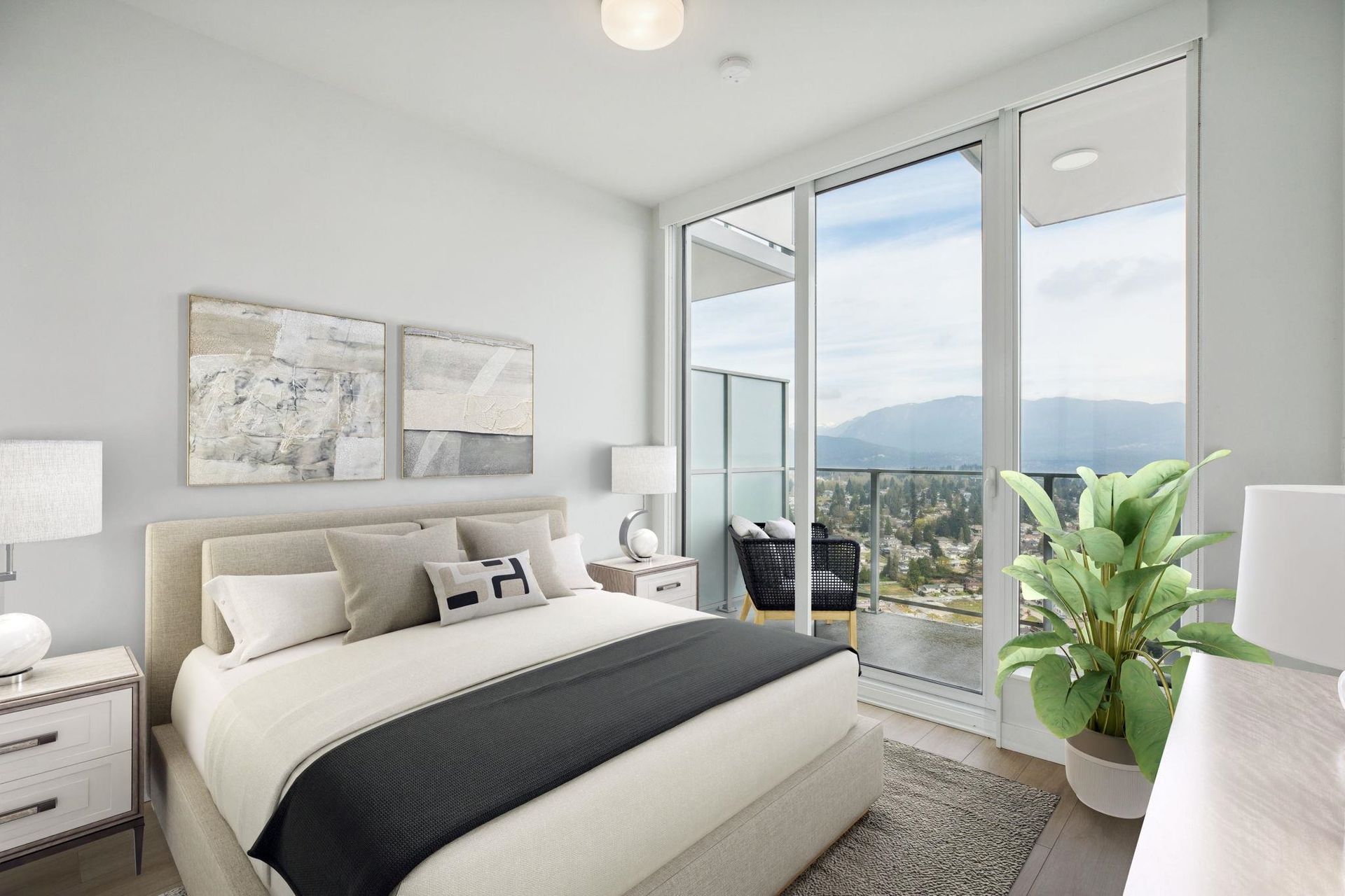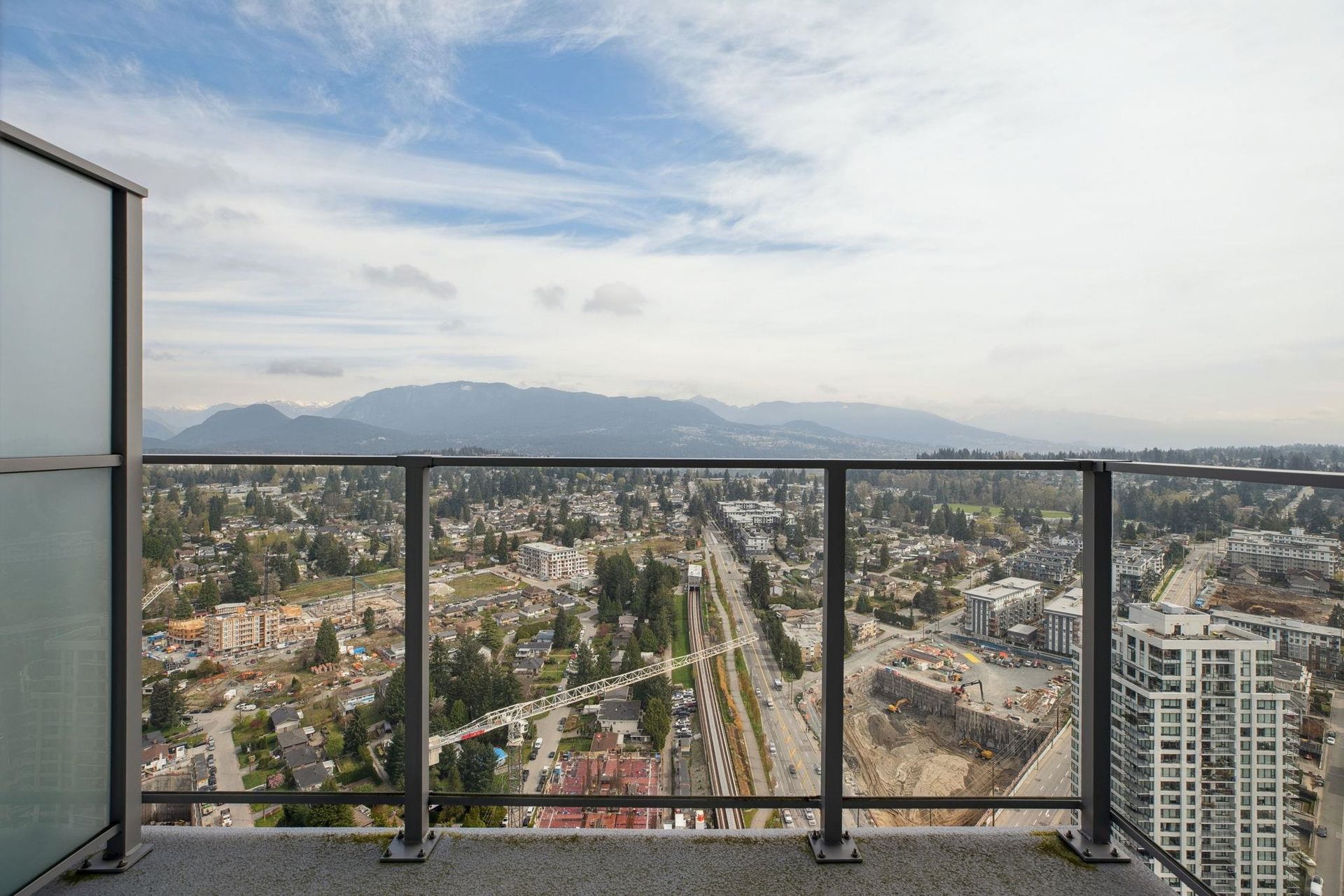 567 CLARKE&COMO by MARCON HOMES. Spacious 2 bedroom and den with 2 balconies with sweeping mountain, city and water views! The kitchen features full sized Fisher&Paykel fridge, Bosch cooktop/oven and a large island with quartz counters/backsplash, flowing into the dining/living rooms on designer laminate flooring. Appreciate over-height floor to ceiling windows inviting dramatic views of the region and beyond! Primary suite is equipped with a large walk-through closet and ensuite with double vanity, ample storage and large walk in shower. Appreciate air-conditioning, separated bedrooms for extra privacy and 20,000sf of amenities including concierge, fitness centre, dining room/lounge, sports courts, guest suites, sauna, rooftop deck/dining and more! All of this steps to Burquitlam Station.