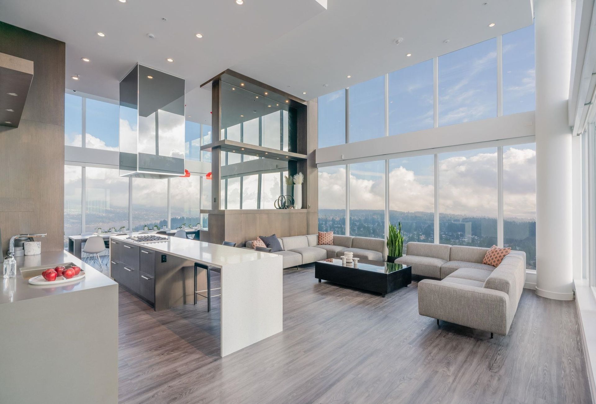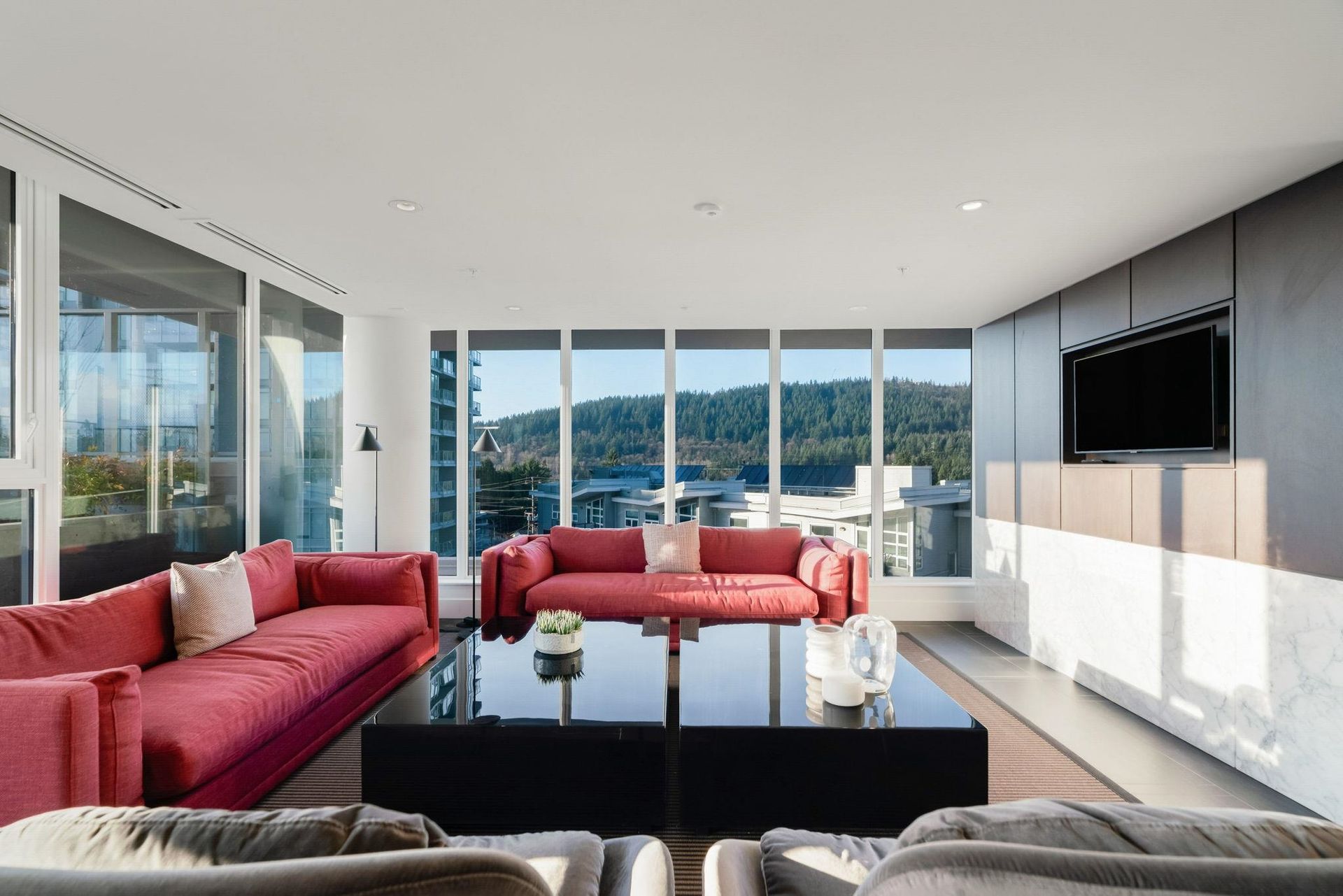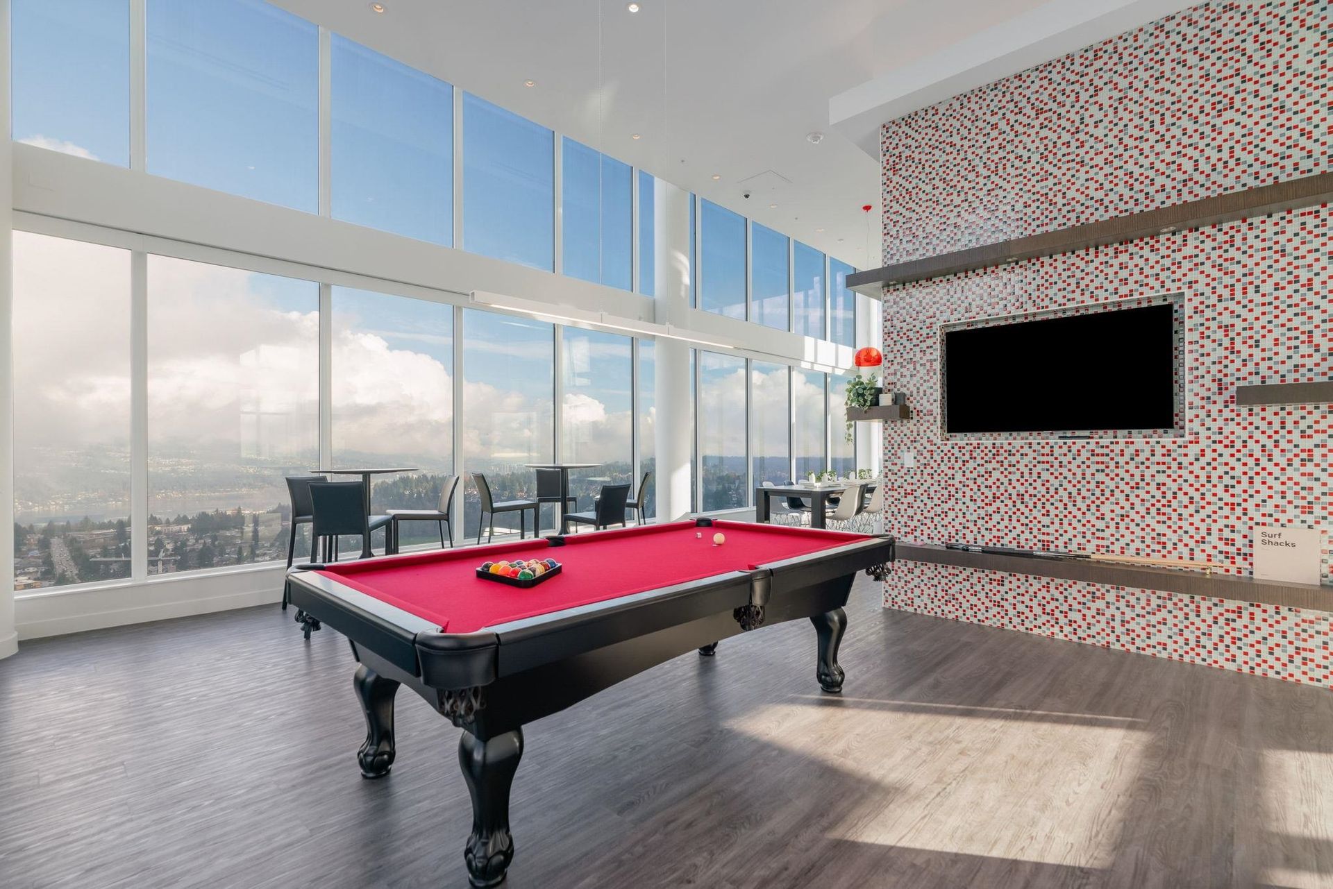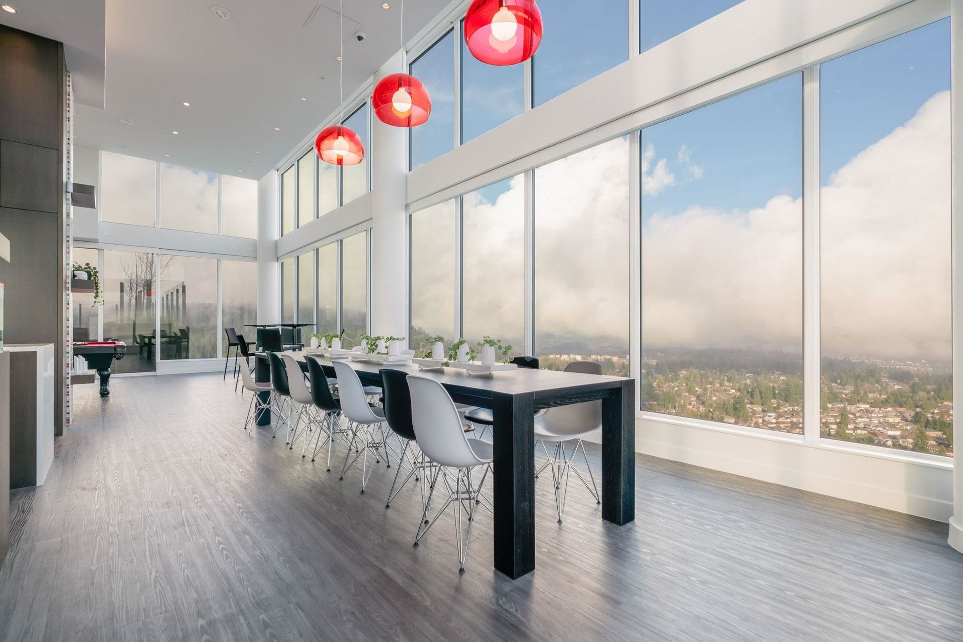 567 CLARKE&COMO by MARCON HOMES. Spacious 2 bedroom and den with 2 balconies with sweeping mountain, city and water views! The kitchen features full sized Fisher&Paykel fridge, Bosch cooktop/oven and a large island with quartz counters/backsplash, flowing into the dining/living rooms on designer laminate flooring. Appreciate over-height floor to ceiling windows inviting dramatic views of the region and beyond! Primary suite is equipped with a large walk-through closet and ensuite with double vanity, ample storage and large walk in shower. Appreciate air-conditioning, separated bedrooms for extra privacy and 20,000sf of amenities including concierge, fitness centre, dining room/lounge, sports courts, guest suites, sauna, rooftop deck/dining and more! All of this steps to Burquitlam Station.