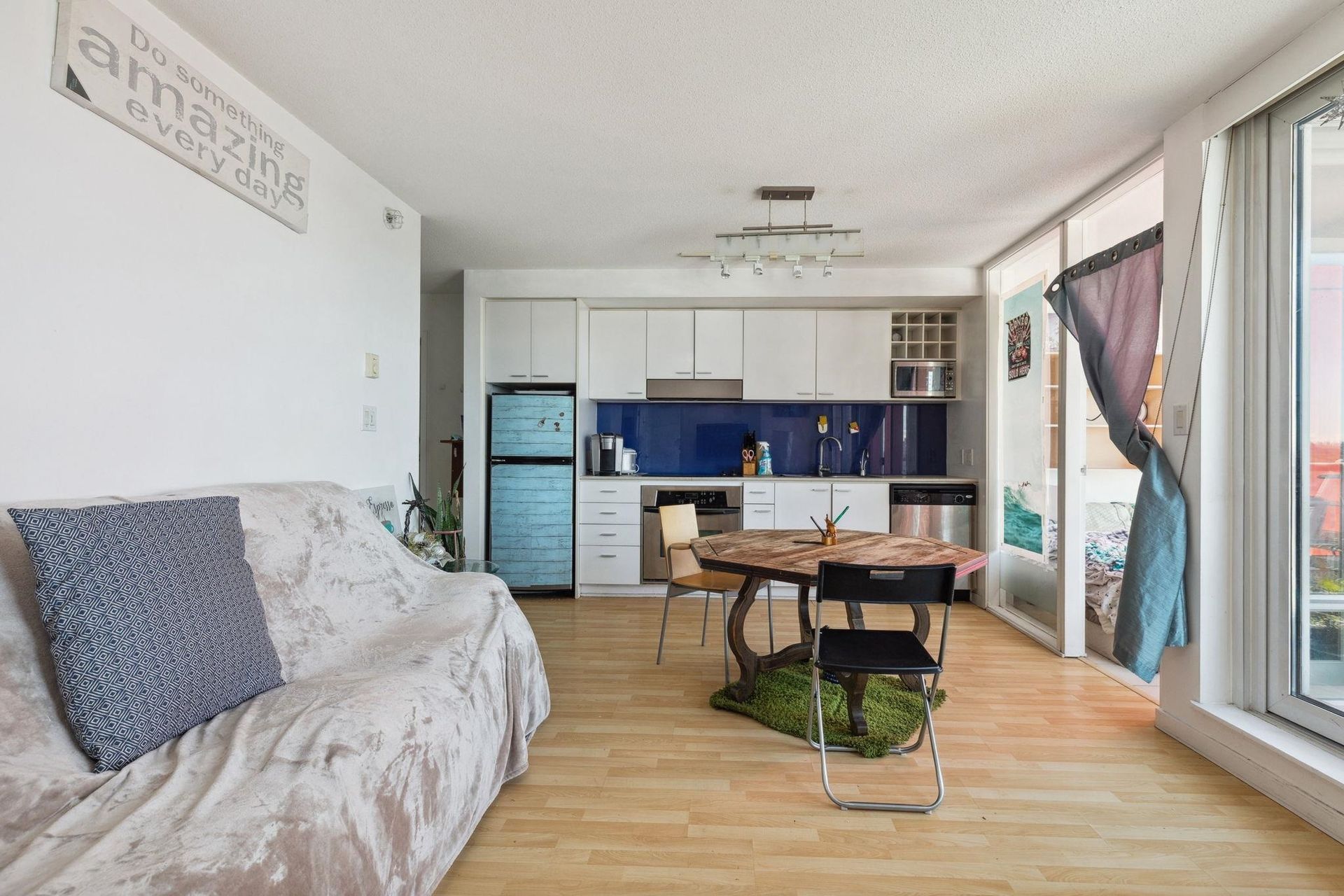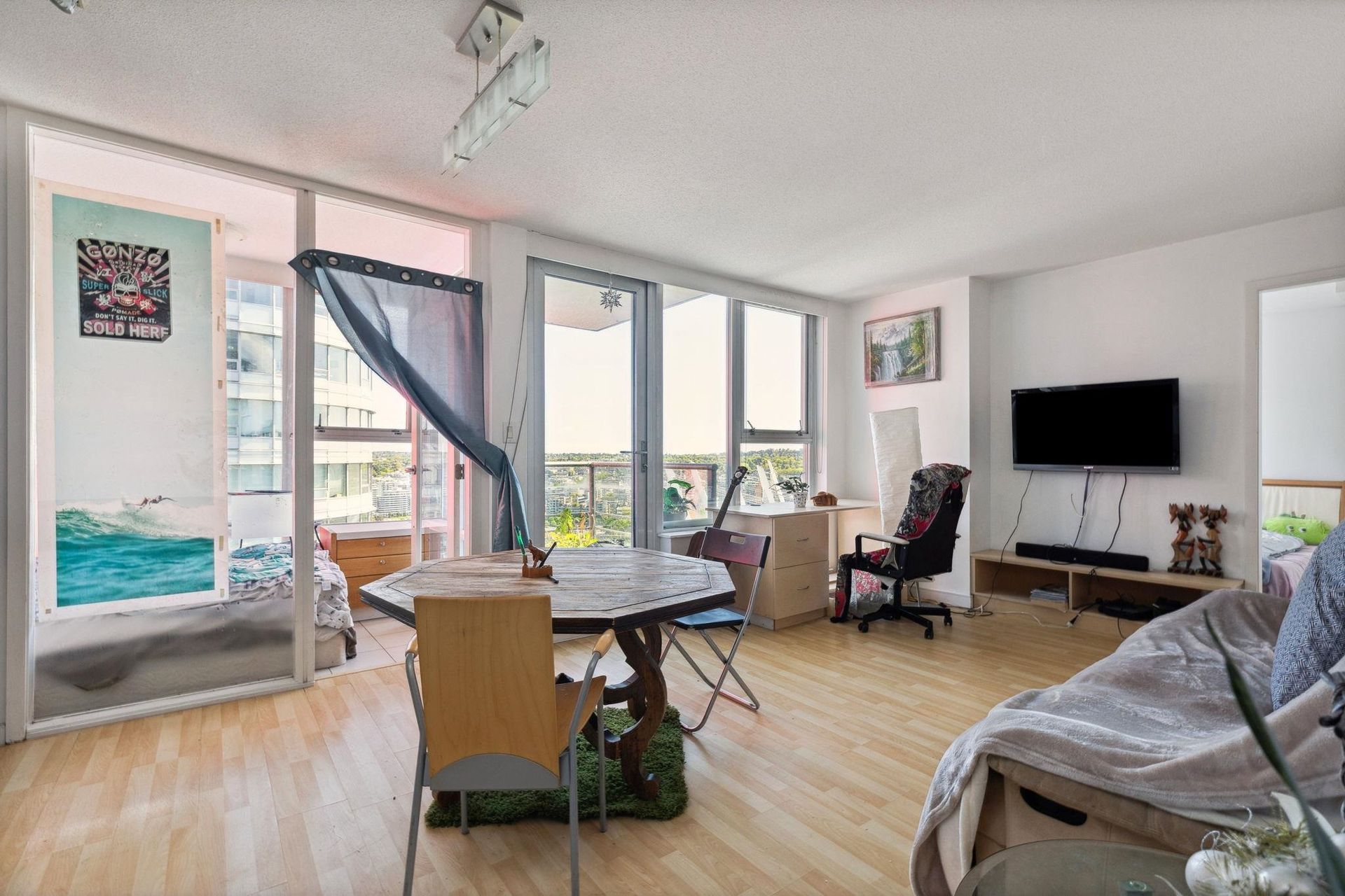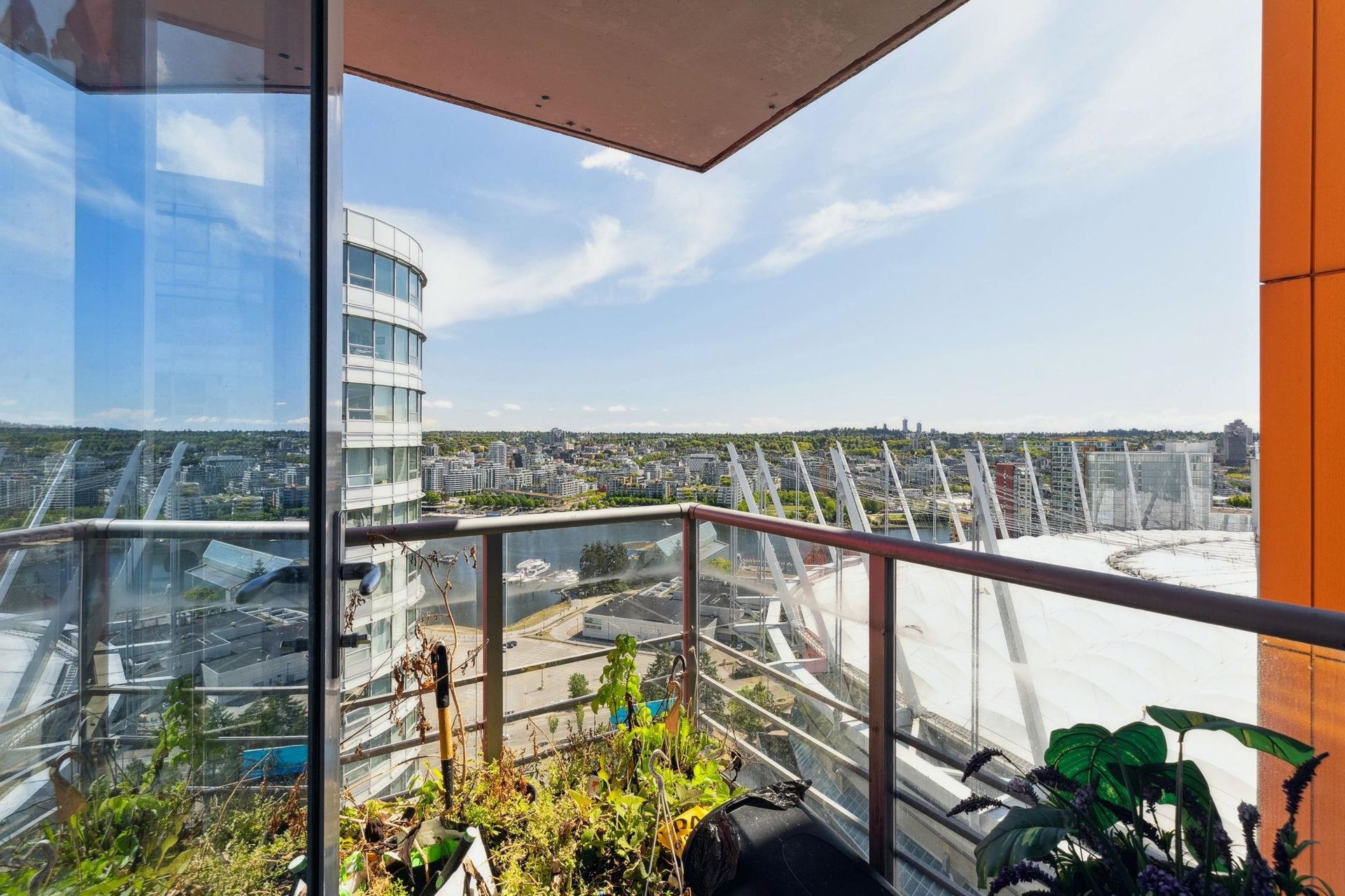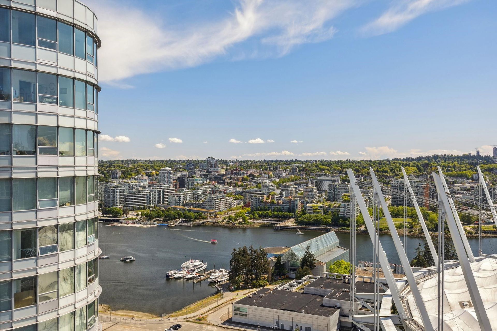 INCREDIBLE FALSE CREEK, BC PLACE AND CITY VIEWS FROM THE 31ST FLOOR! This oversized 1 bedroom and den is super functional and invites dramatic panoramic views. The efficient, open concept layout offers a large dining/living area, den with windows (perfect office space and can accomodate a bed) and spacious bedroom with walk-in-closet! Appreciate floor-to-ceiling windows and durable laminate flooring throughout. Perfect for first time home buyers and investors alike. In the heart of Stadium District... steps to Rogers Arena, BC Place, Costco, Stadium-Chinatown Skytrain Station, T&T, Gastown, shopping, eateries and the Seawall - the centre of all of the city's excitement. The complex features 24-hour concierge, indoor pool, fitness centre, steam and sauna.