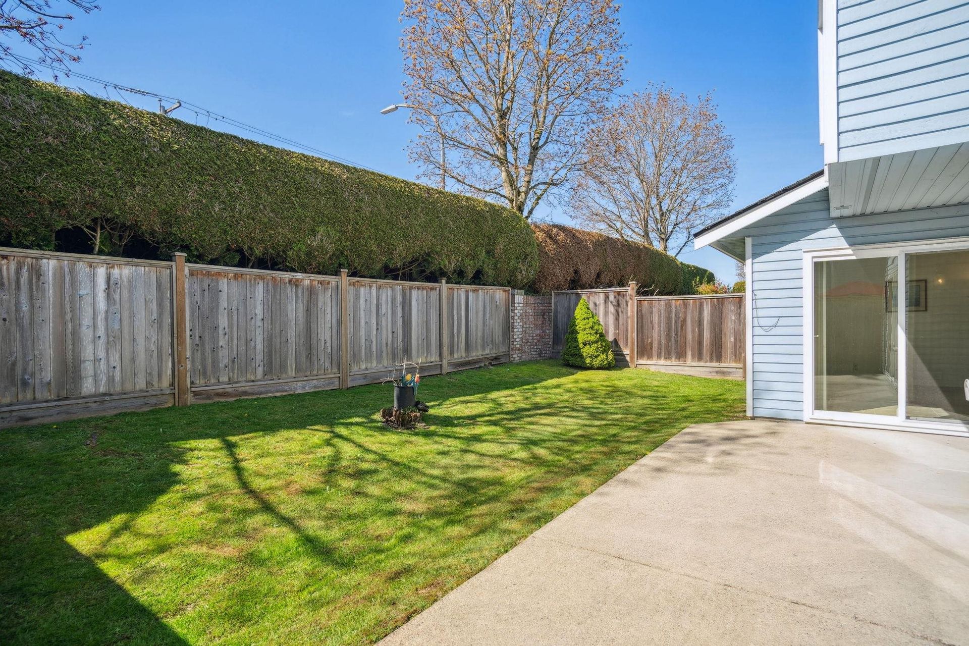 RARE TOTALLY DETACHED TOWNHOME WITH PRIVATE YARD! This original owner, lightly used home feels like a detached home with double-height foyer, large principal rooms, double garage and large private yard with mature, tall hedges. The main floor features a large living room with fireplace and sliding door leading to sunny patio and yard, dining room, cozy eat in kitchen and powder room. Upstairs are 3 large bedrooms, spacious ensuite, laundry/utility room and balcony for morning coffees. Super well-run, proactive strata with mostly owner occupiers. Exterior upgrades include new roof (2010), fence (2015), windows (2019), gutters (2019), paint (2021), balcony membrane (2022), and garage door (2022). Interior upgrades: new furnace and hot water tank. School Catchment: Errington/Steveston-London.