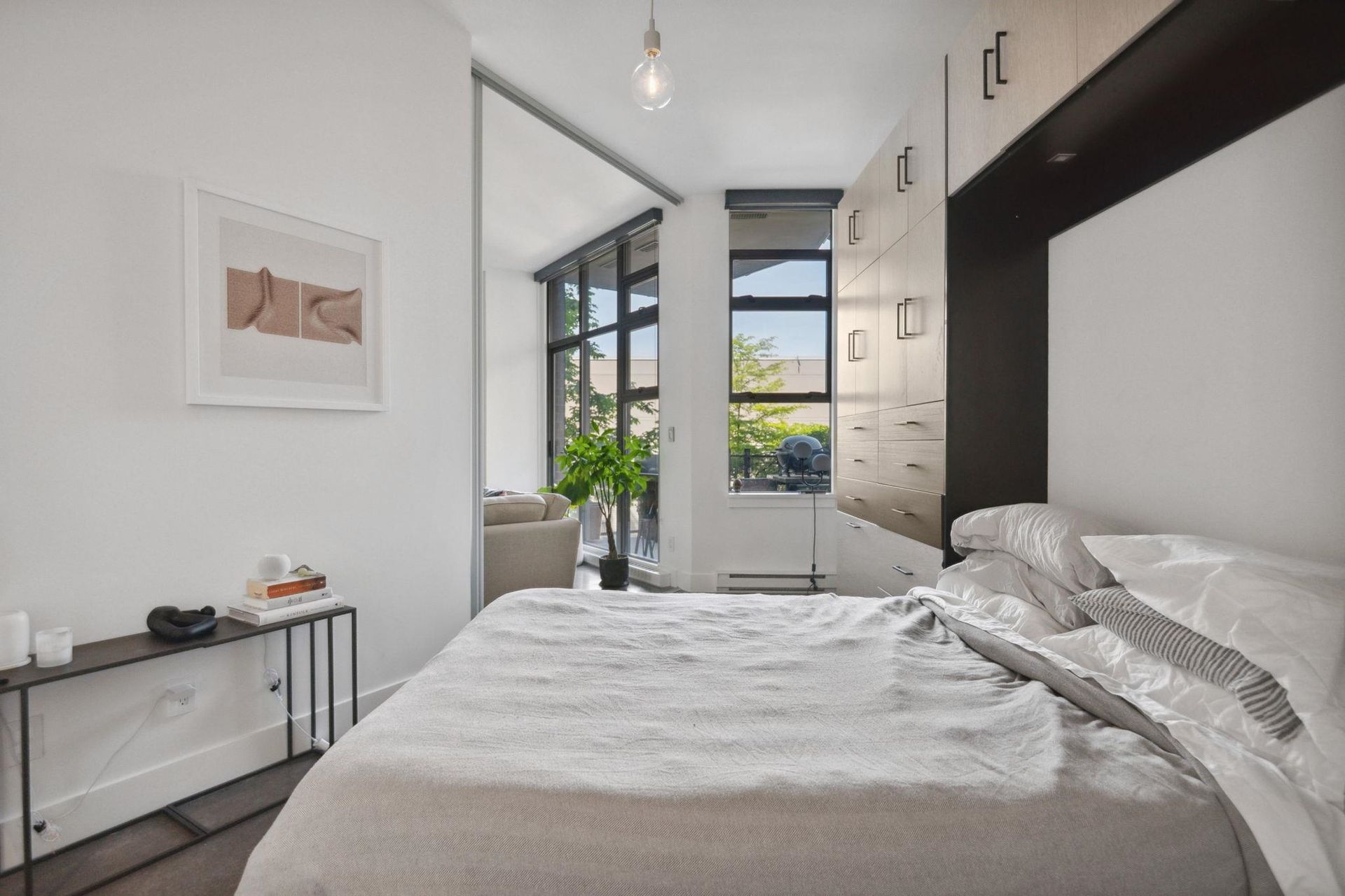 SLEEK 1 BEDROOM LOFT LIVING (CAN BE MADE INTO A 2 BEDROOM) IN MOUNT PLEASANT'S MOST DESIRABLE BUILDING! Welcome to the epitome of industrial loft living with polished concrete floors, and soaring ceilings. The kitchen features floor to ceiling cabinetry, updated stainless appliances, and a kitchen island with black granite counters, flowing into the separated living and dining spaces, framed and punctuated by floor to ceilings windows inviting quaint courtyard views. Appreciate the spacious covered patio, flat ceilings, roller blinds, updated lighting, and updated bathroom. The bedroom is roomy and inviting and features a fully integrated California Closet closet/storage system. Steps to the city's best restaurants, shopping and transit.