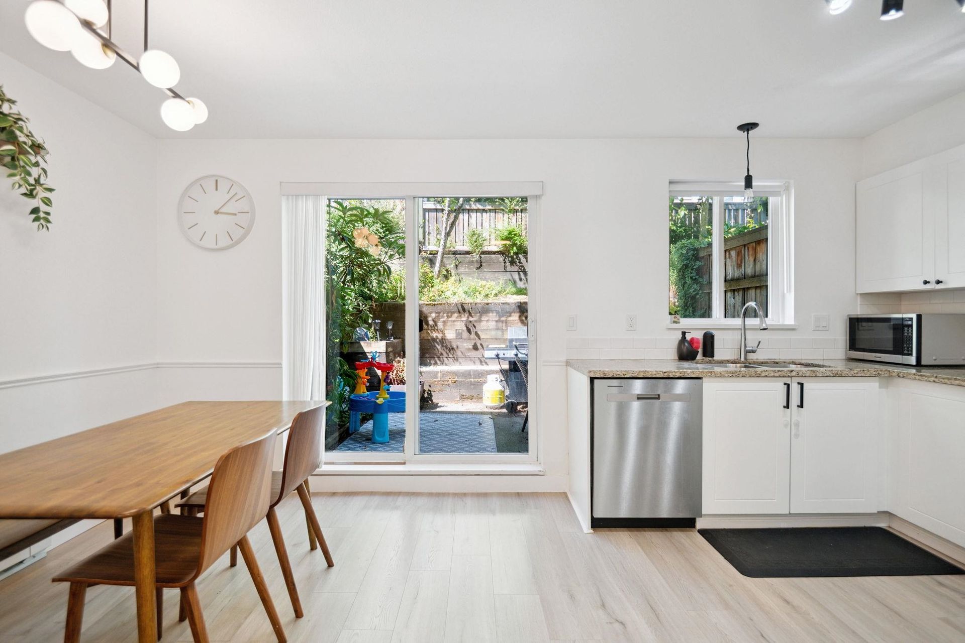 BERKLEY by ADERA HOMES. Welcome home to your peaceful oasis at the end of a safe, tree-lined cul-de-sac. This renovated townhome features an updated kitchen with shaker cabinetry, sleek stainless steel appliances and granite counters, flowing on durable laminate flooring into the dining/living room and private, fenced yard. The living room features a cozy gas fireplace, bay window seating and space for a work from home setup. Upstairs are 3 sizeable bedrooms with 5 piece bathroom and oversized washer/dryer. Below is a recreation room - perfect for an office or additional sleeping quarters. Located a short walk to SkyTrain Station, Highgate Village shopping, grocery stores and parks! Quick drive to Metrotown and Kingsway amenities.