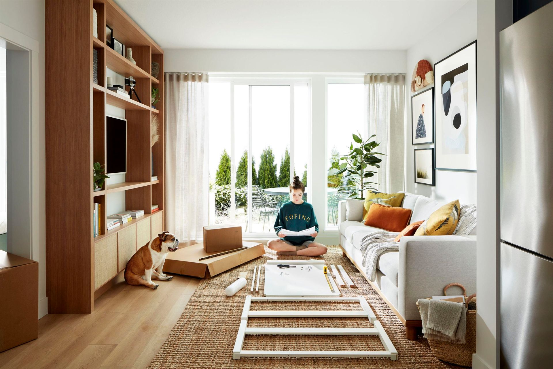 ASSIGNMENT OPPORTUNITY AT SOLD OUT MOODY YARDS by MOSAIC HOMES. 721 square foot 2 bedroom, 2 bathroom home with expansive covered balcony inviting city views. Appreciate a functional, open concept floorplan with overheight 9' ceilings and large picture windows. The kitchen features slim shaker cabinetry, integrated appliances and quartz counters and opens into the dining/living areas on durable laminate flooring. The bathrooms feature designer tiling, frameless glass shower/deep soaker tub and quart counters. Amenities include 36,000 SF of communal outdoor space and an amazing co-work studio! All of this, a quick stroll to Rocky Point Park, SkyTrain/West Coast Express, Brewers Row and Shoreline Trail. Includes 1 parking & 1 storage locker. Estimated completion early 2026!