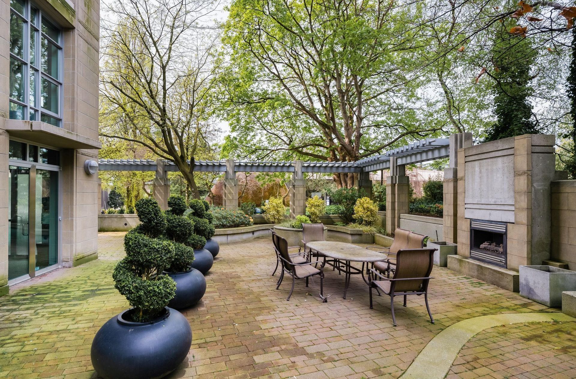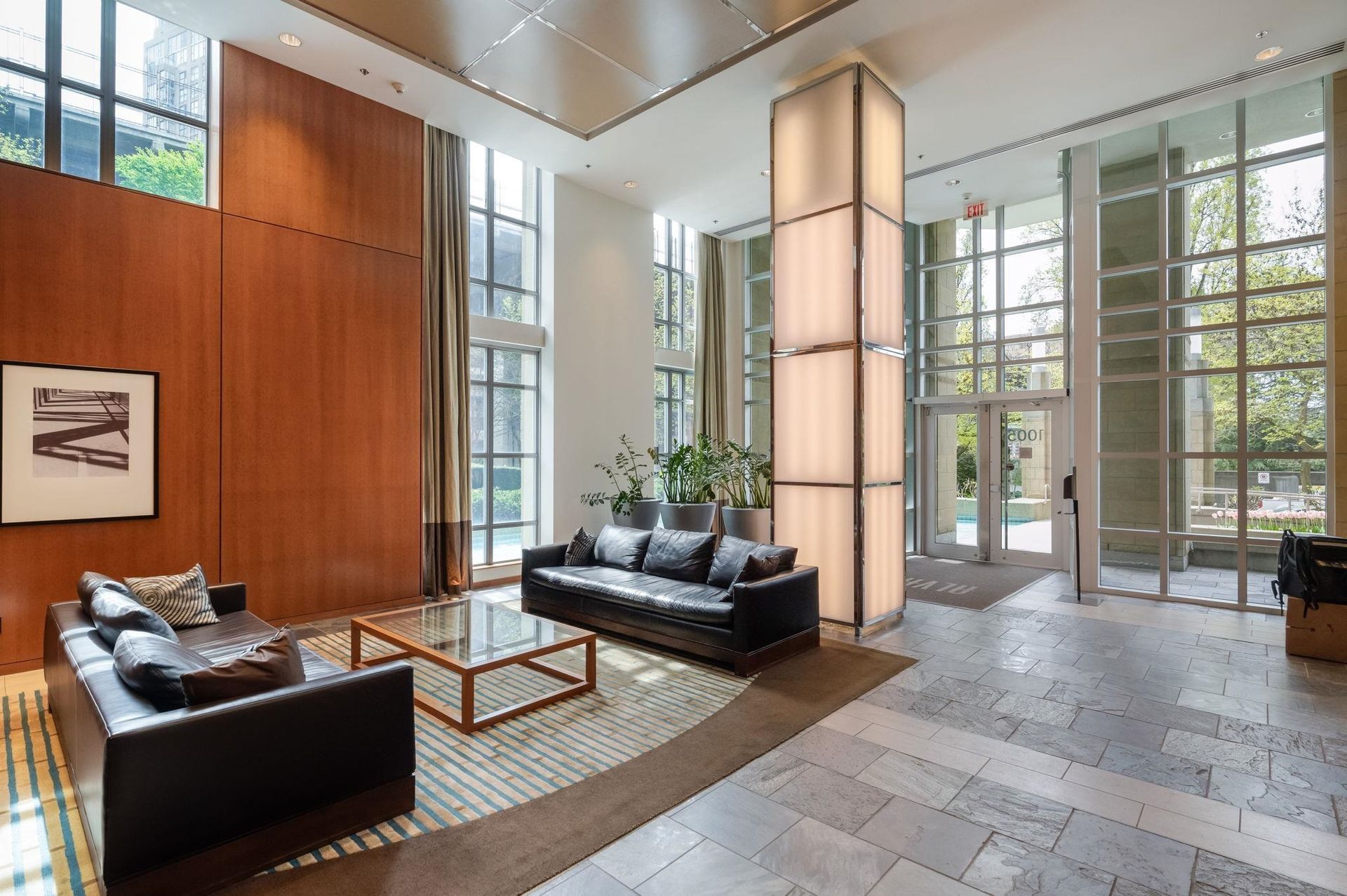 ALVAR - your front row seat to English Bay beauty and serenity. This west exposure, 2 bed + den, 2 bath home features a functional and efficient floorplan, punctuated by over-height ceilings and expansive windows inviting city and water views. Appreciate an entertainment sized kitchen with island seating, plenty of cabinetry, and sleek appliances, all flowing into the open-concept dining and living rooms. The principal suite is generous in size and the ensuite features a soaker tub and contemporary finishes. Central air-conditioning and a covered patio for year round enjoyment and comfort. Building amenities include fitness centre, outdoor terrace, party and meeting room. But the best amenity is at your doorstep...