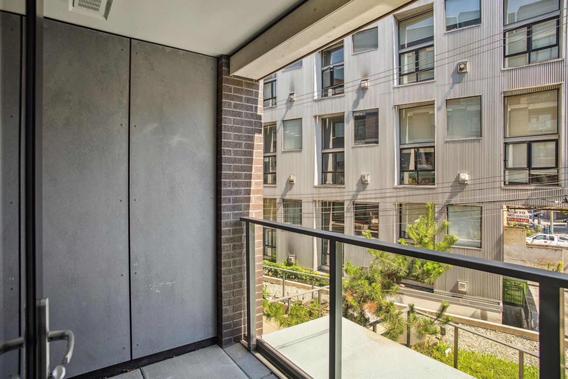 ELANORE BY CHARD - the latest addition to Mount Pleasant's storied history! This quiet east facing, efficient one bedroom home boasts sleek, top of the line finishes and central air-conditioning. The gourmet kitchen features Wolf cooktop and wall oven, integrated fridge, Fisher&Paykel double dishwasher, custom cabinetry and quartz counters, flowing on designer laminate flooring into the open concept living space. The bathroom features an oversized vanity with ample storage, oversized medicine cabinet, deep soaker tub and radiant in-floor heating. Appreciate a generously sized bedroom, roller blinds throughout and a quiet inner courtyard view. This premier boutique building is perfectly situated in an exciting neighbourhood, walking distance to the city's bests!