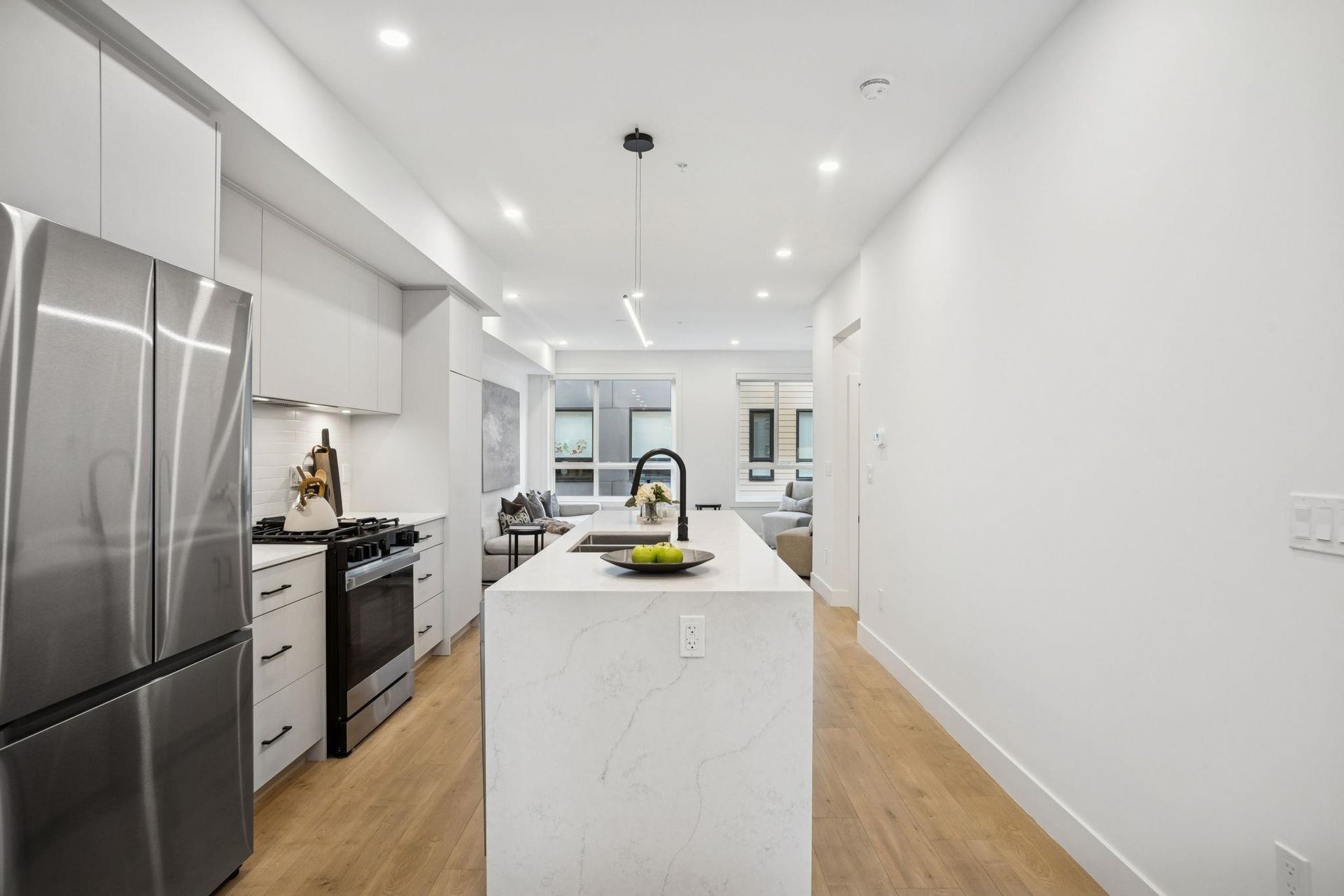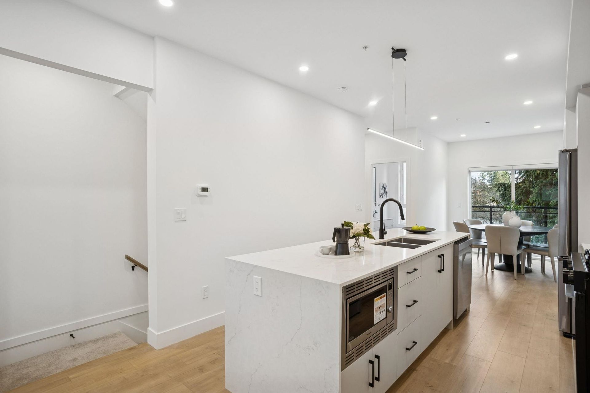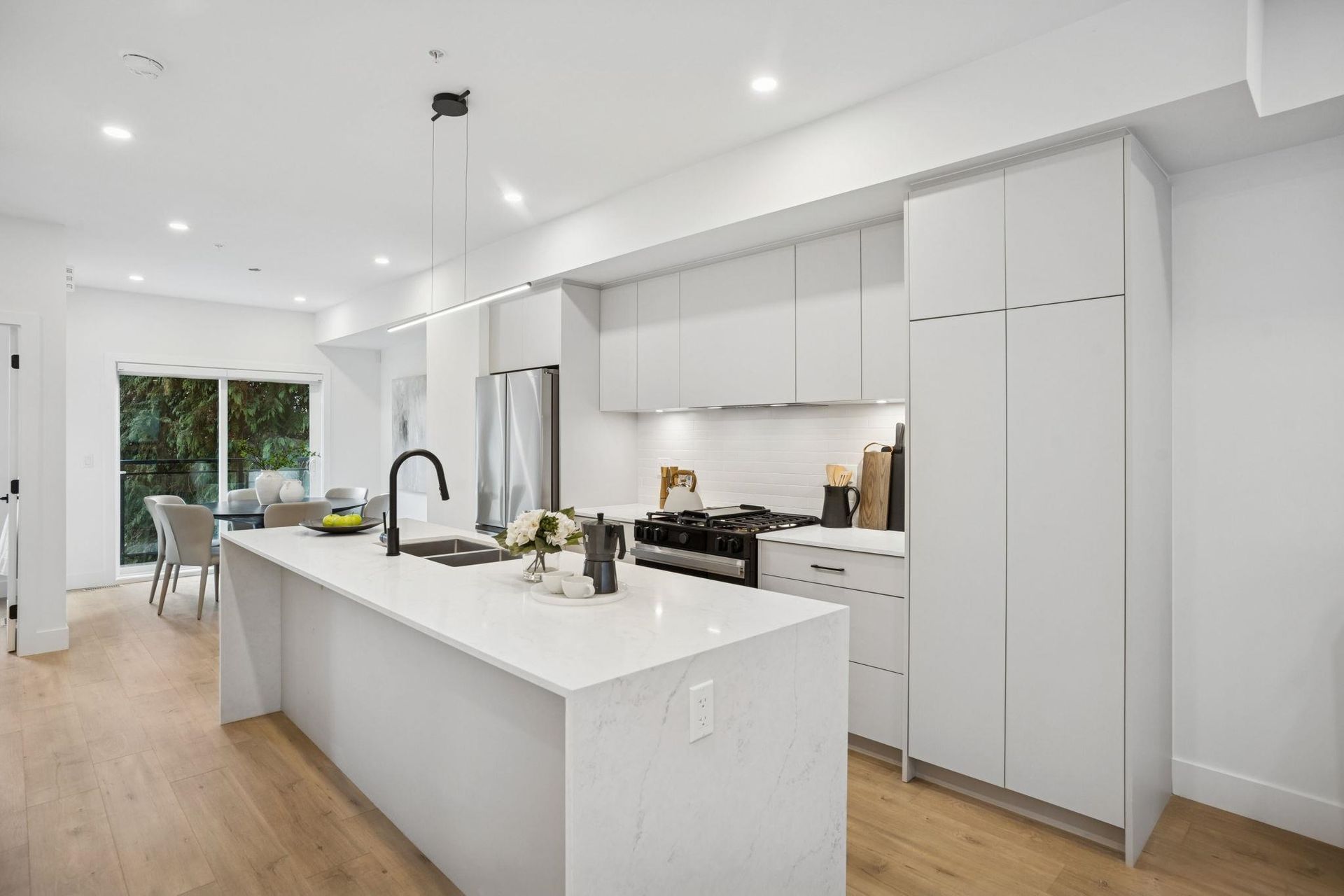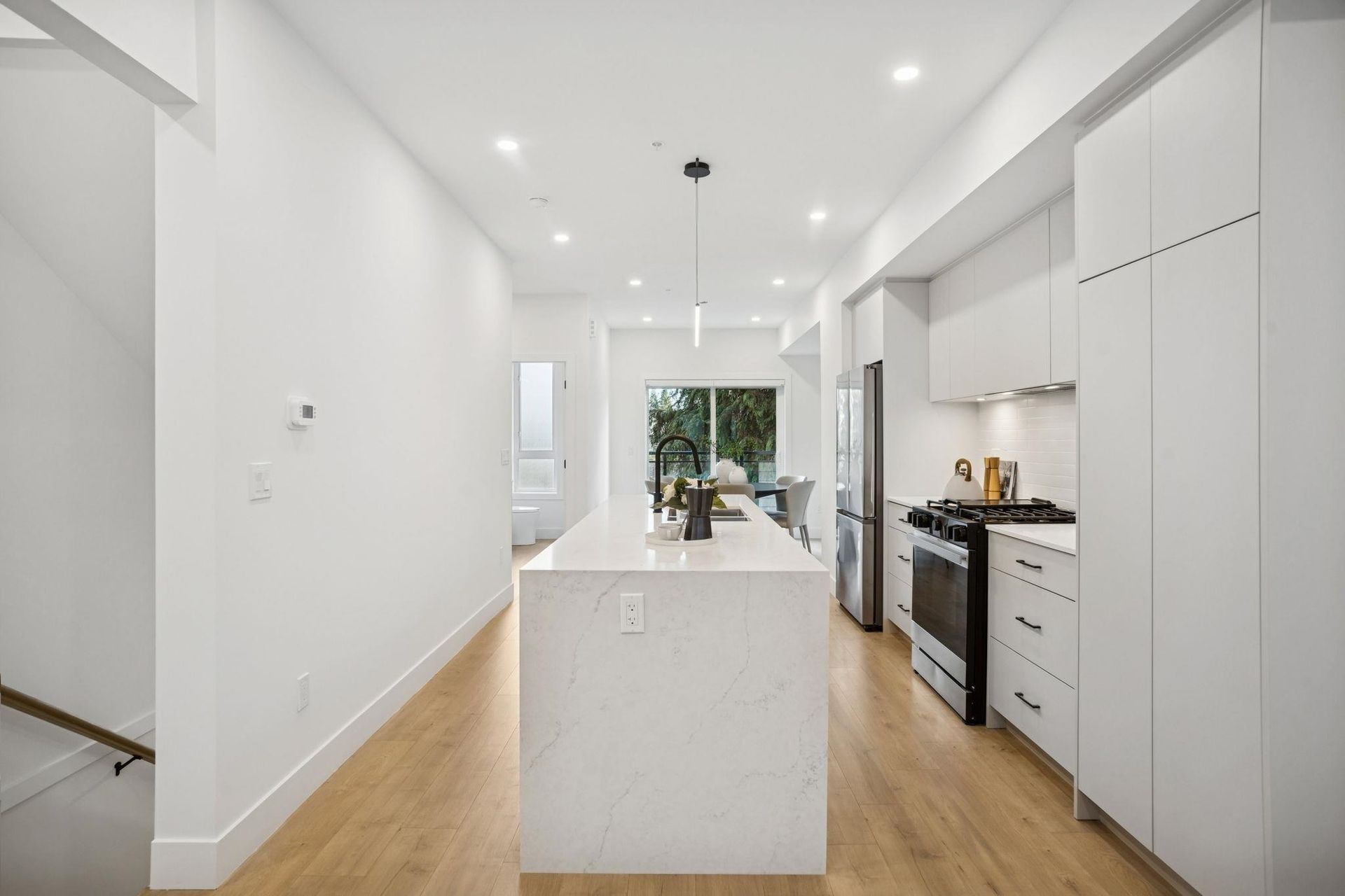 BRAND NEW 3 BEDROOM TOWNHOME WITH ROOFTOP DECK! This townhome features an open concept kitchen with sleek cabinetry, large kitchen island with quartz waterfall countertops, stainless steel appliances including gas range, flowing on durable laminate flooring into the spacious living and dining rooms and opens onto a patio with gas hookup. Appreciate 9' ceilings, oversized windows, forced air heating/air-conditioning and roller blinds throughout. Above is a primary suite with 4 piece , double vanity ensuite and 2 additional spacious bedrooms sharing a beautifully contemporary bathroom. This home features a 428SF rooftop deck and garage for 2 vehicles and EV charging! ***OPEN HOUSE: SAT, DEC 6 1-3PM & SUN, DEC 7 2-4PM***