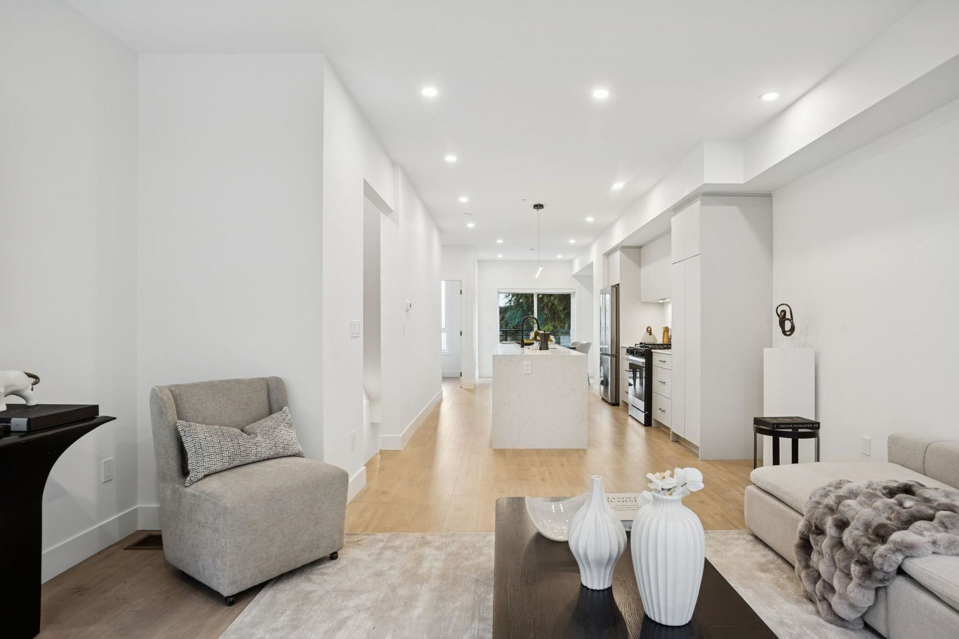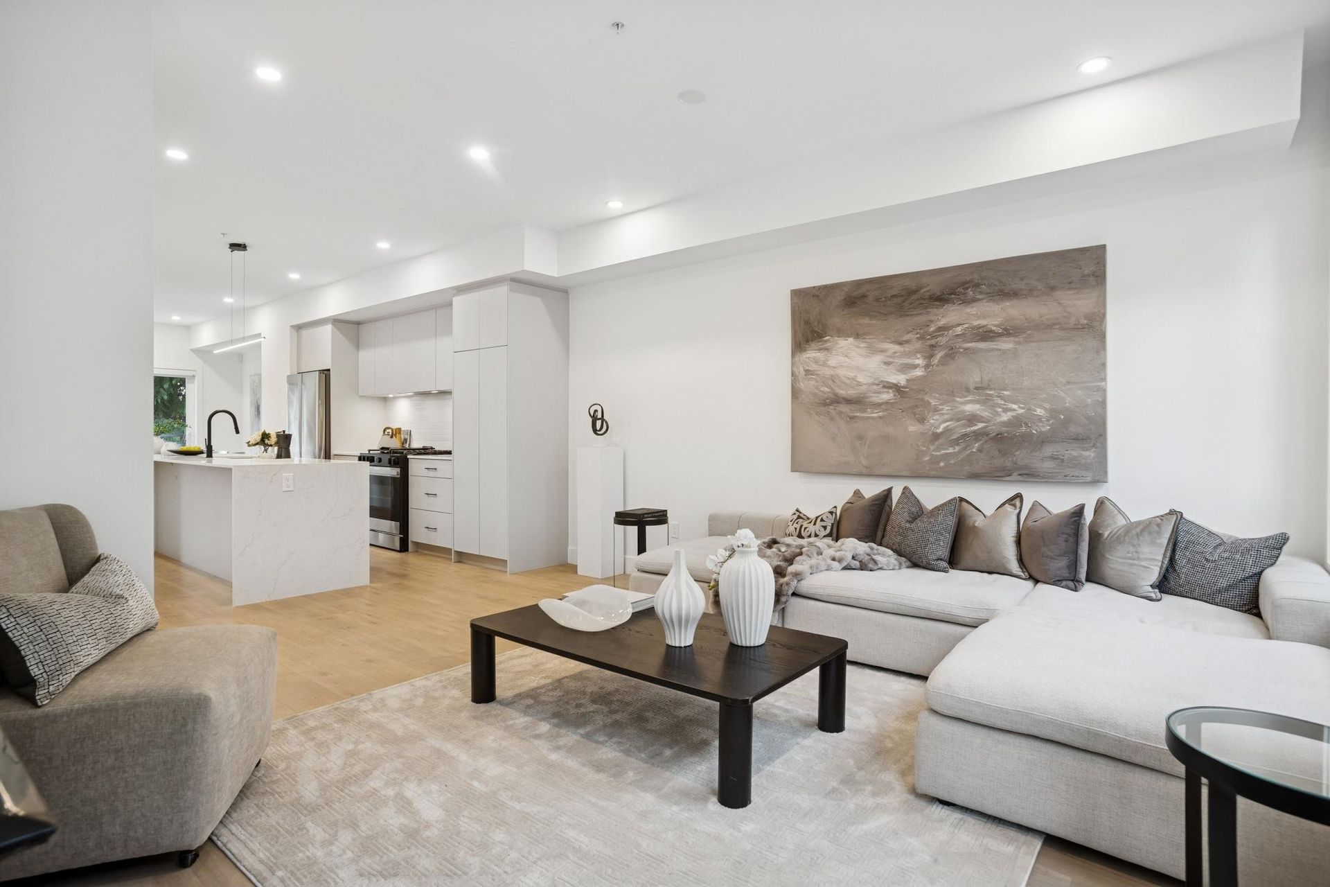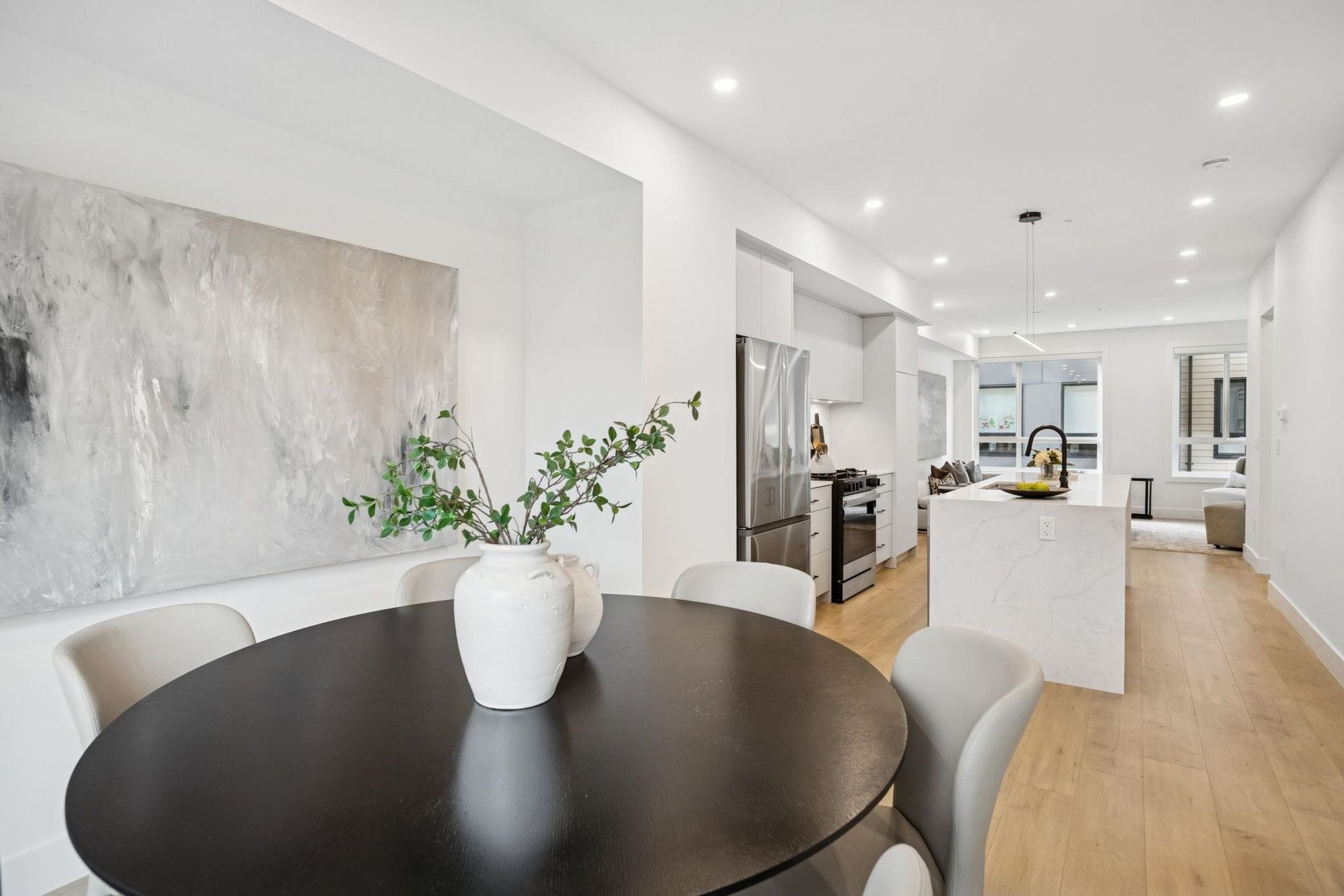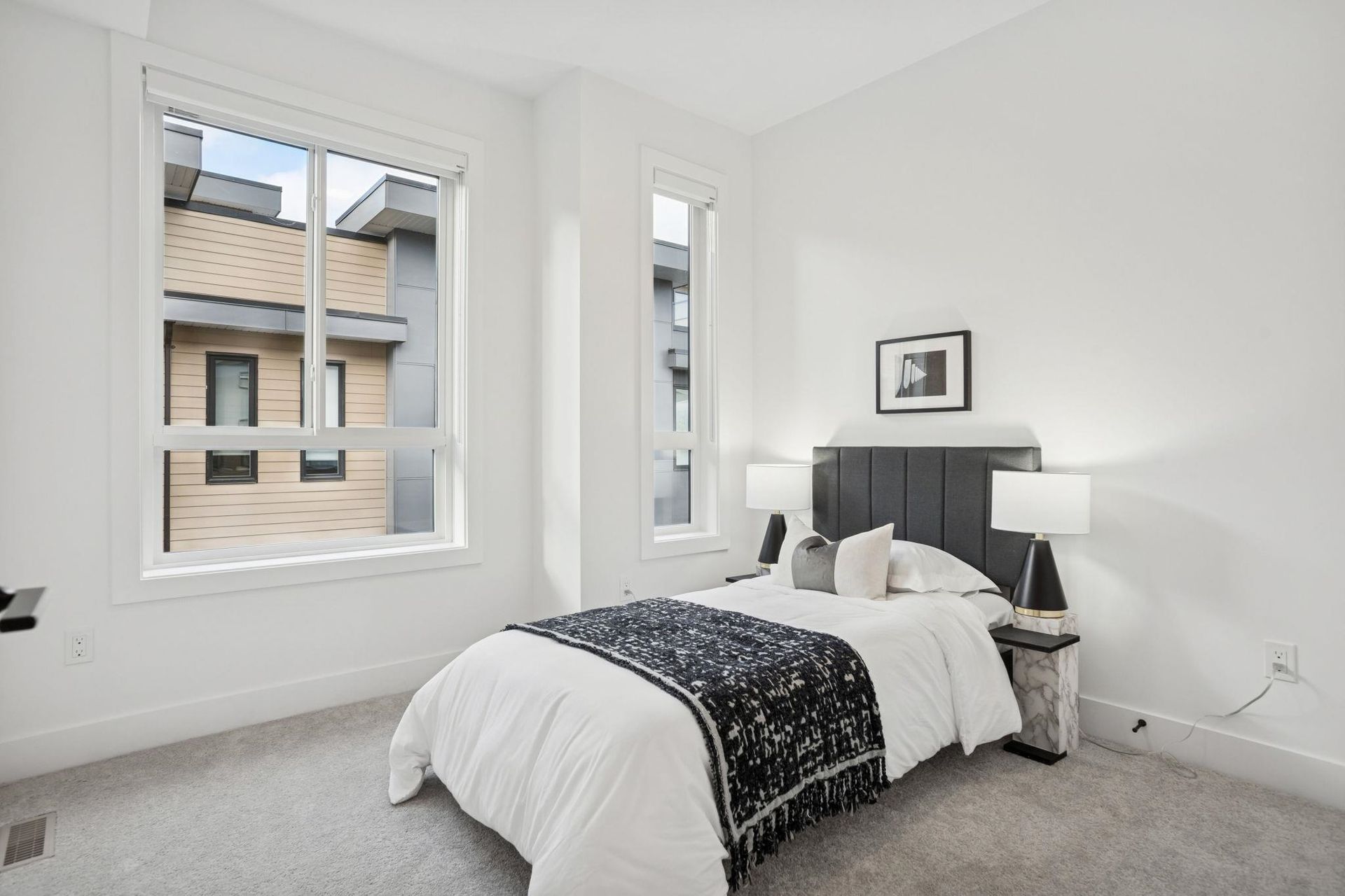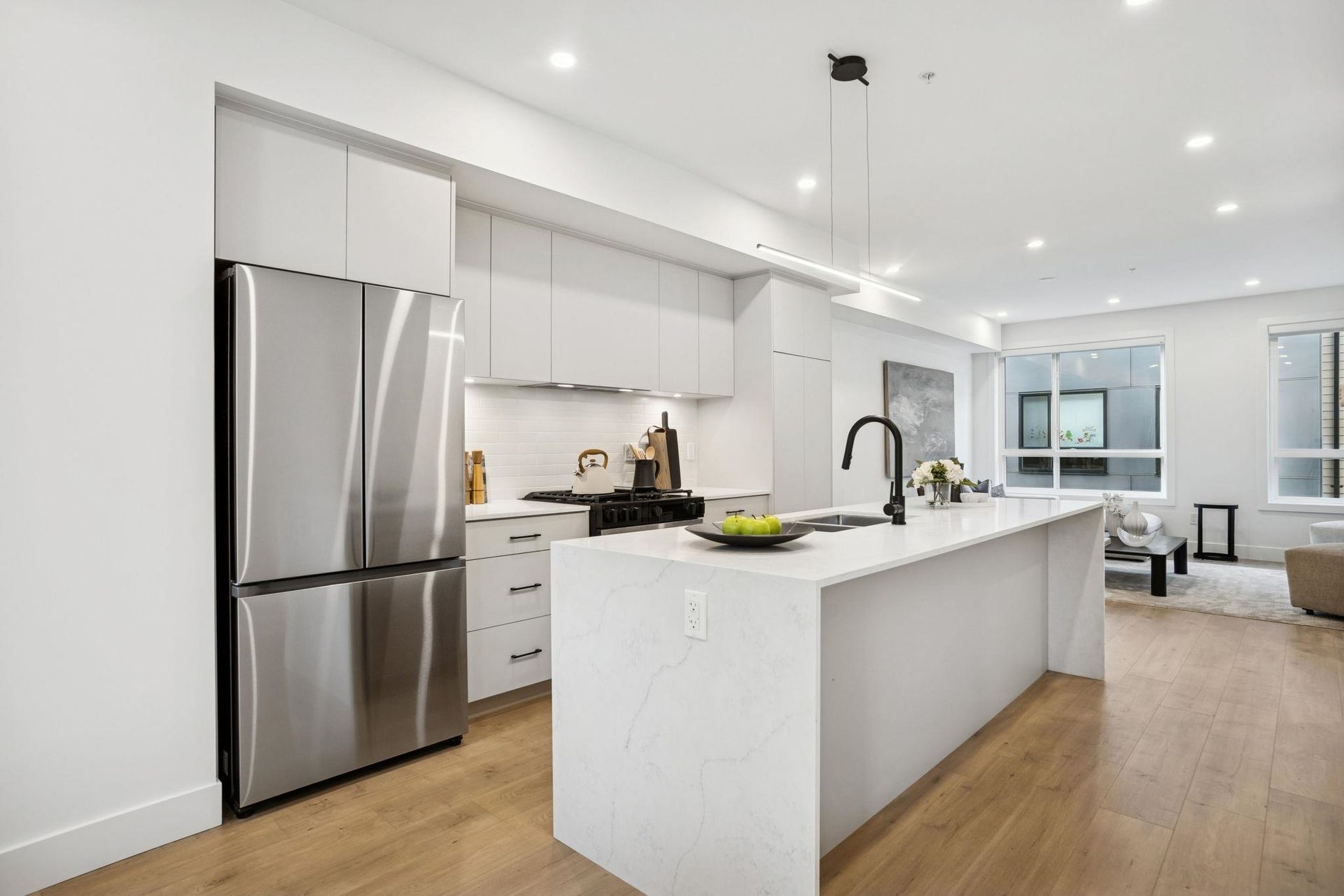 BRAND NEW 3 BEDROOM TOWNHOME WITH ROOFTOP DECK! This townhome features an open concept kitchen with sleek cabinetry, large kitchen island with quartz waterfall countertops, stainless steel appliances including gas range, flowing on durable laminate flooring into the spacious living and dining rooms and opens onto a patio with gas hookup. Appreciate 9' ceilings, oversized windows, forced air heating/air-conditioning and roller blinds throughout. Above is a primary suite with 4 piece , double vanity ensuite and 2 additional spacious bedrooms sharing a beautifully contemporary bathroom. This home features a 428SF rooftop deck and garage for 2 vehicles and EV charging! ***OPEN HOUSE: SAT, DEC 6 1-3PM & SUN, DEC 7 2-4PM***