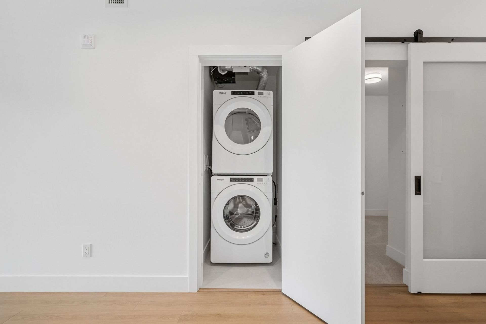 MOODY YARDS BY MOSAIC HOMES. Brand new, super functional junior 2 bedroom, 2 bathroom home with oversized 268SF covered patio inviting lush city and greenbelt views.... steps to Rocky Point Park, Moody Centre Station and Brewers Row. The kitchen features full height slim shaker cabinetry, quartz counters, large pantry and sleek appliances, flowing on designer laminate flooring into the open concept living space. Appreciate 9' ceilings, oversized windows inviting lush, peaceful views and sleek bathrooms with deep soaker tub/walk in shower, contemporary tiles and designer fixtures. Amenities include 36,000SF of landscaped outdoor space and co-working lounge. Includes 1 parking & 1 storage. GST paid and 2-5-10 year warranty.