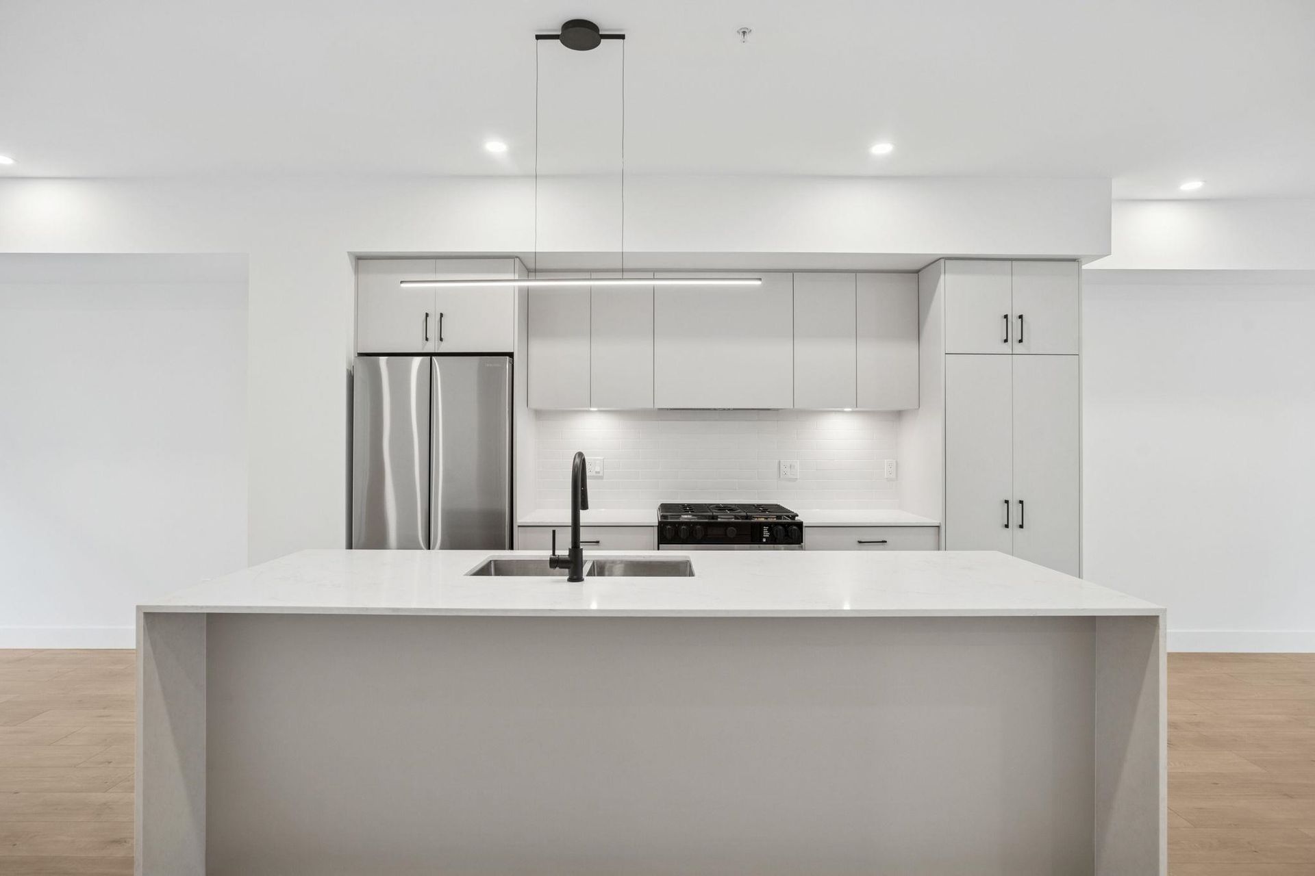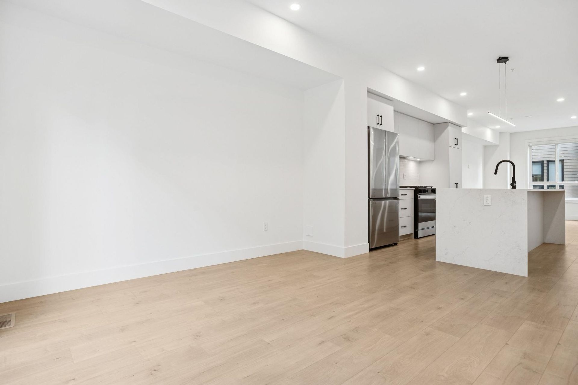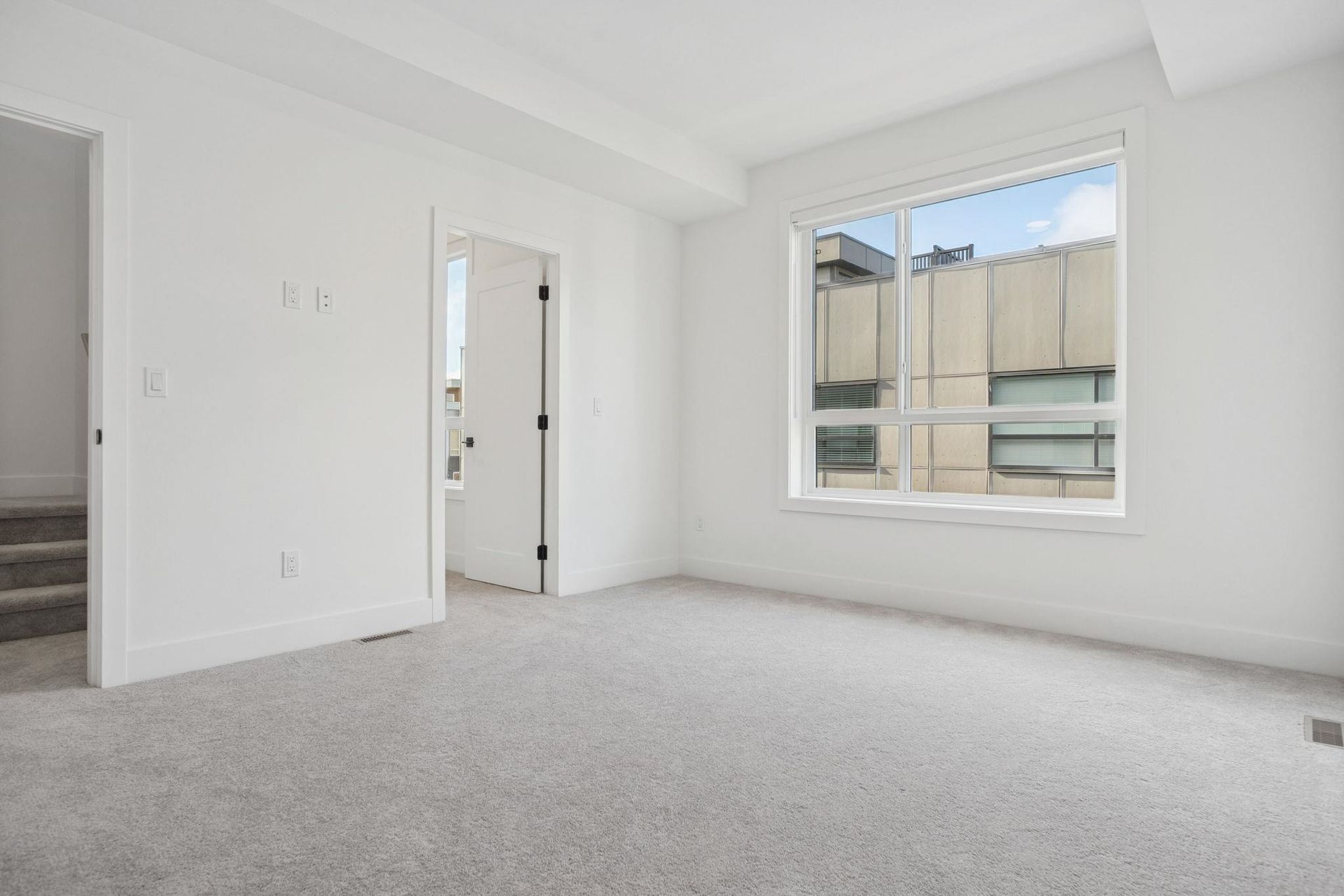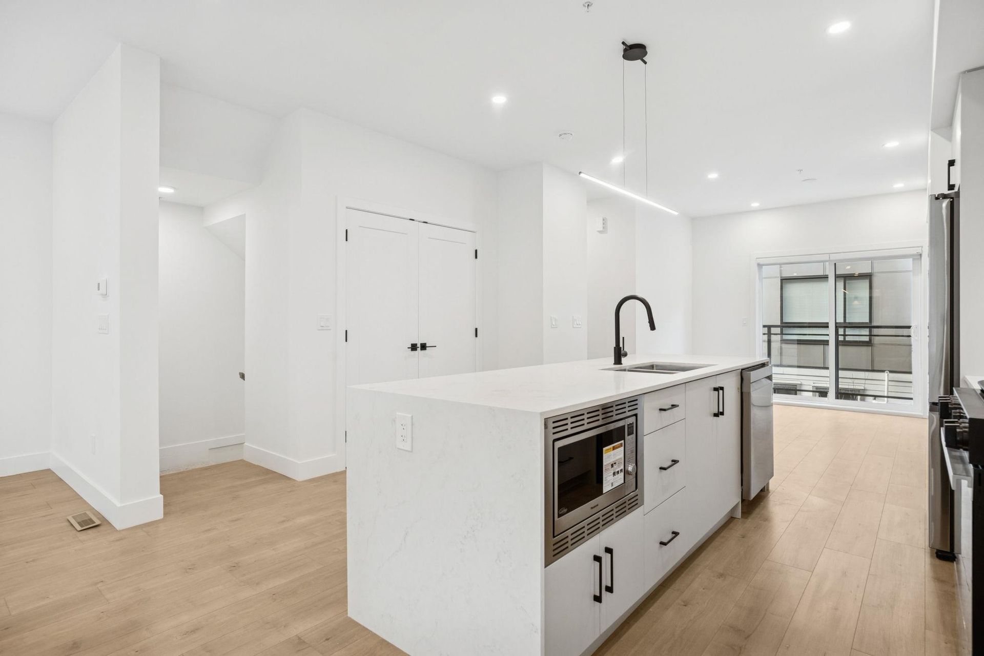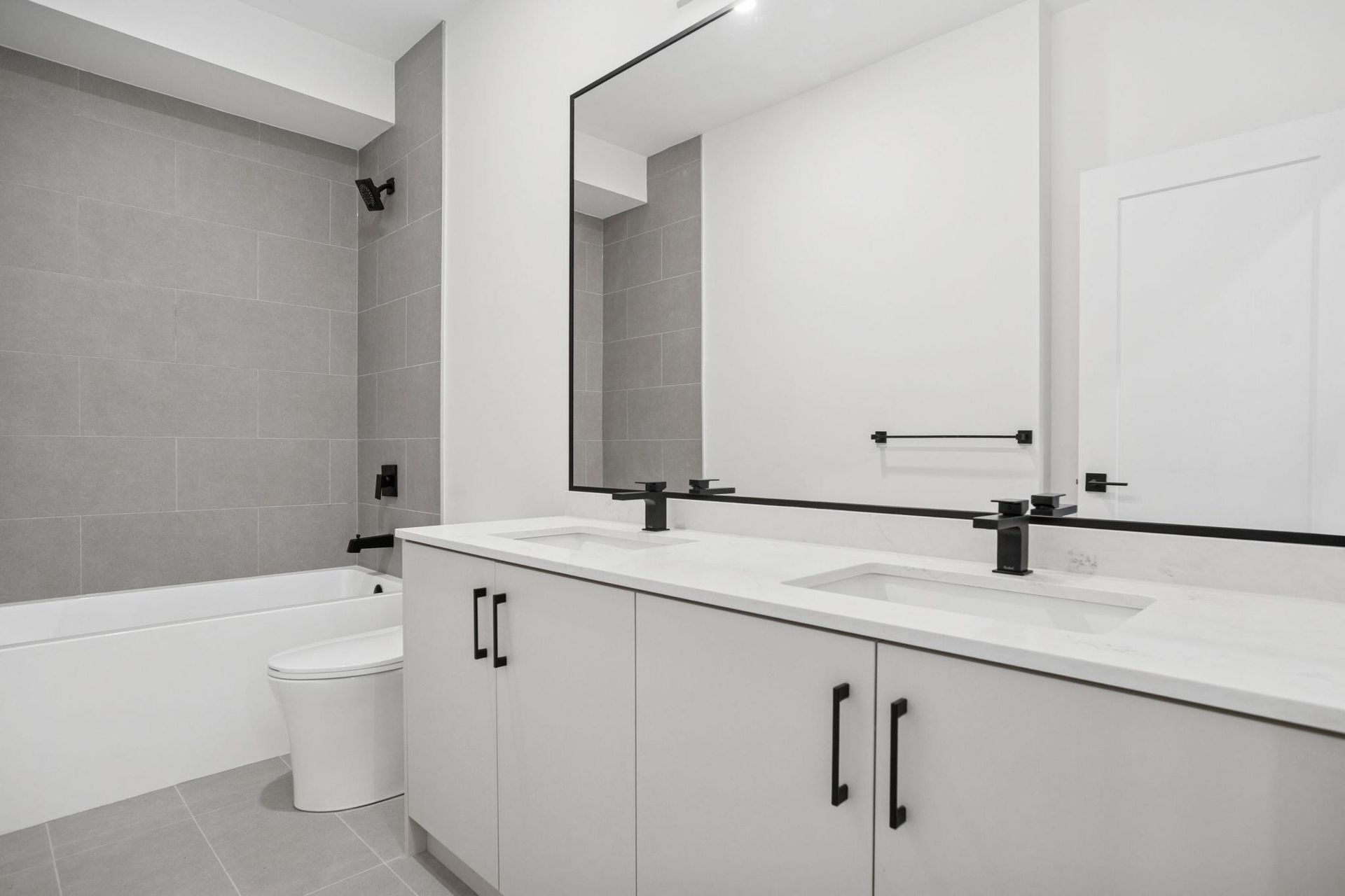 BRAND NEW CORNER 4 BEDROOM TOWNHOME WITH ROOFTOP DECK! This townhome features an open concept kitchen with sleek cabinetry, large kitchen island with quartz waterfall countertops, stainless steel appliances including gas range, flowing on durable laminate flooring into the spacious living and dining rooms and opens onto a patio with gas hookup. Appreciate lots of natural light, windows, 9' ceilings, forced air heating/air-conditioning and roller blinds throughout. Above is a primary suite with 4 piece ensuite and walk in closet as well as 2 additional spacious bedrooms and a shared bathroom with double vanity and side by side laundry. Below is an ensuited fourth bedroom with lock off potential. This home features a 663SF rooftop deck and double garage with EV charging!