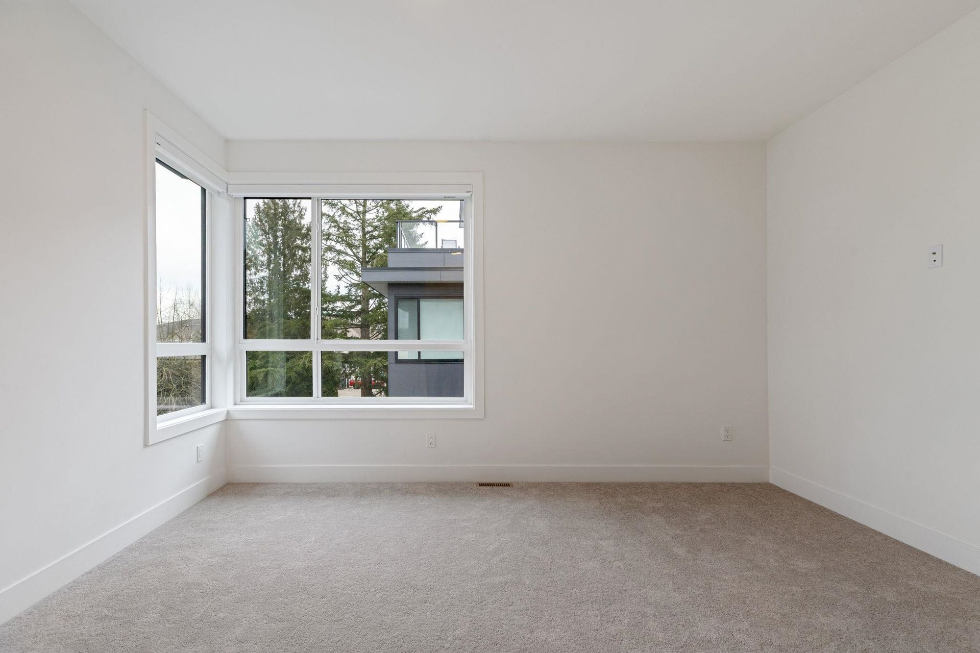 BRAND NEW CORNER 3 BEDROOM TOWNHOME WITH ROOFTOP DECK! This townhome features an open concept kitchen with sleek cabinetry, large kitchen island with quartz waterfall countertops, stainless steel appliances including gas range, flowing on durable laminate flooring into the spacious living and dining rooms and opens onto a patio with gas hookup. Appreciate 9' ceilings, oversized windows, forced air heating/air-conditioning and roller blinds throughout. Above is a primary suite with 4 piece , double vanity ensuite and 2 additional spacious bedrooms sharing a beautifully contemporary bathroom. This home features a 559SF rooftop deck and garage for 2 vehicles and EV charging!