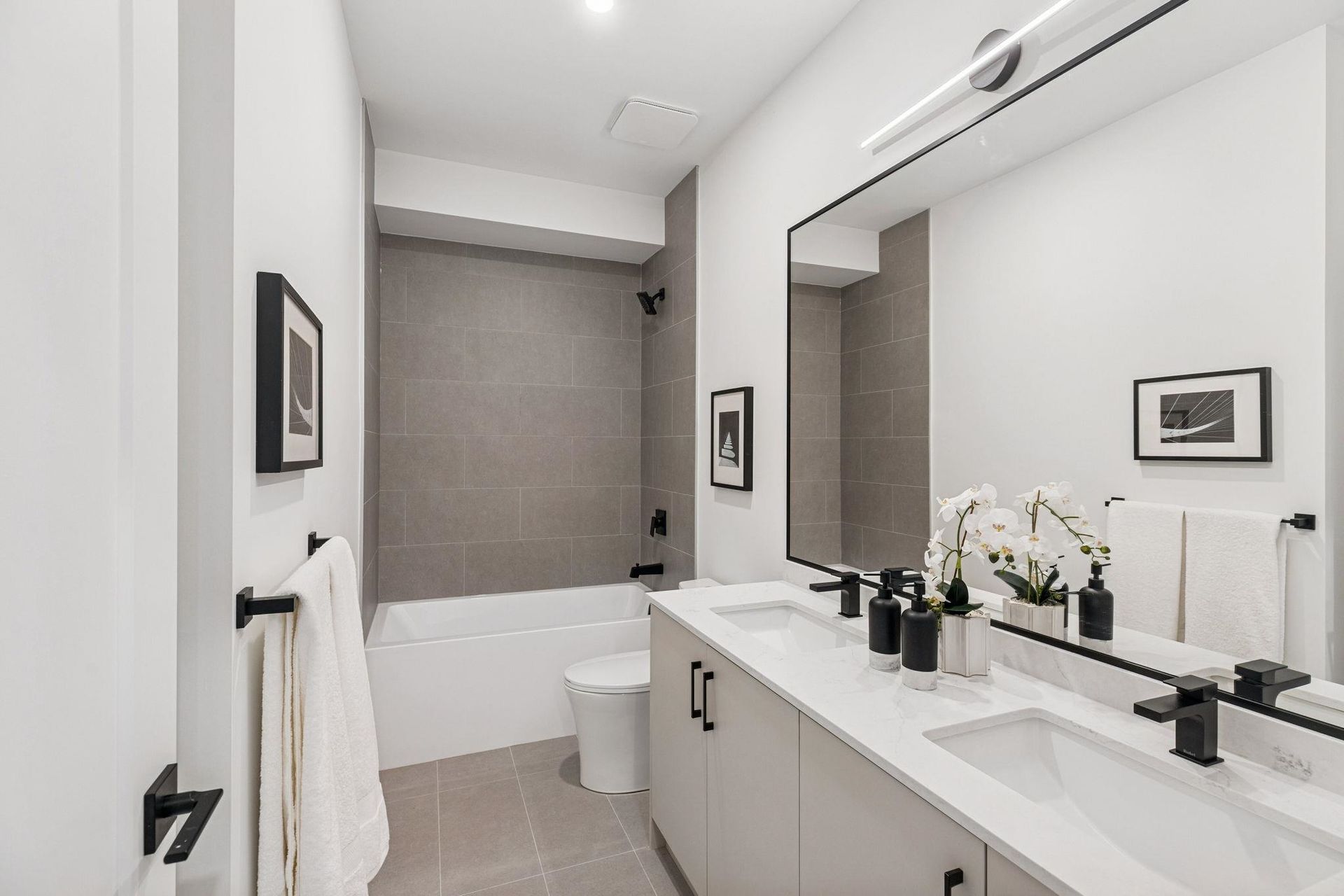 BRAND NEW 4 BEDROOM TOWNHOME WITH ROOFTOP DECK! This townhome features an open concept kitchen with sleek cabinetry, large kitchen island with quartz waterfall countertops, stainless steel appliances including gas range, flowing on durable laminate flooring into the spacious living and dining rooms and opens onto a patio with gas hookup. Appreciate 9' ceilings, forced air heating/air-conditioning and roller blinds throughout. Above is a primary suite with 4 piece ensuite and walk in closet as well as 2 additional spacious bedrooms and a shared bathroom with double vanity and side by side laundry. Below is an ensuited fourth bedroom with lock off potential. This home features a 663SF rooftop deck and double garage with EV charging!
