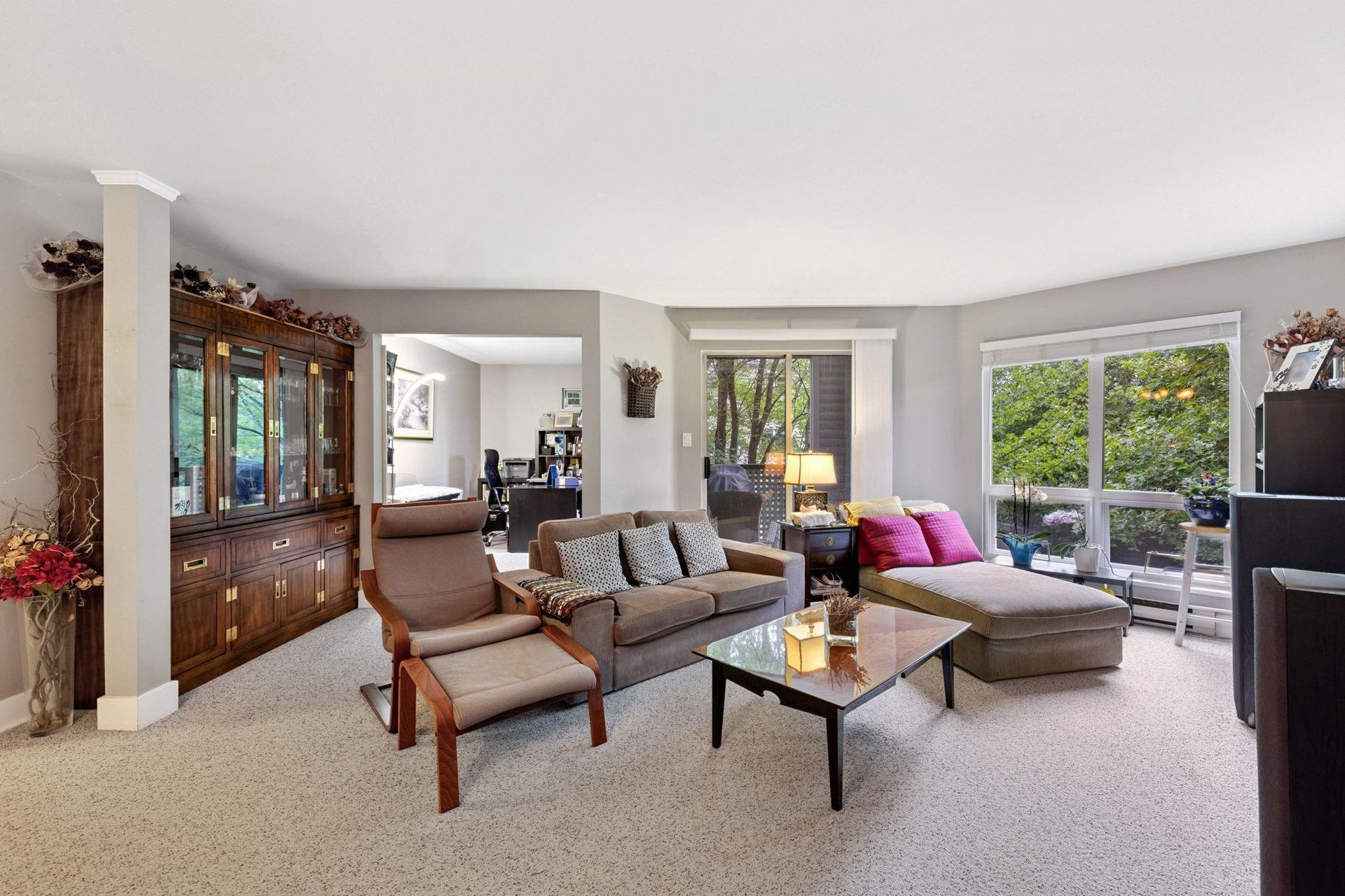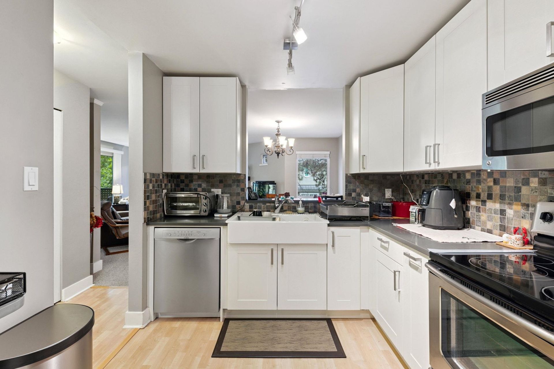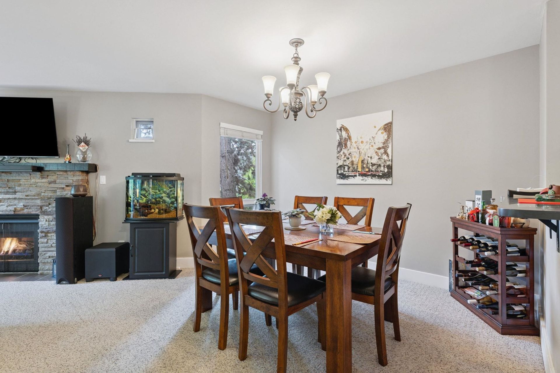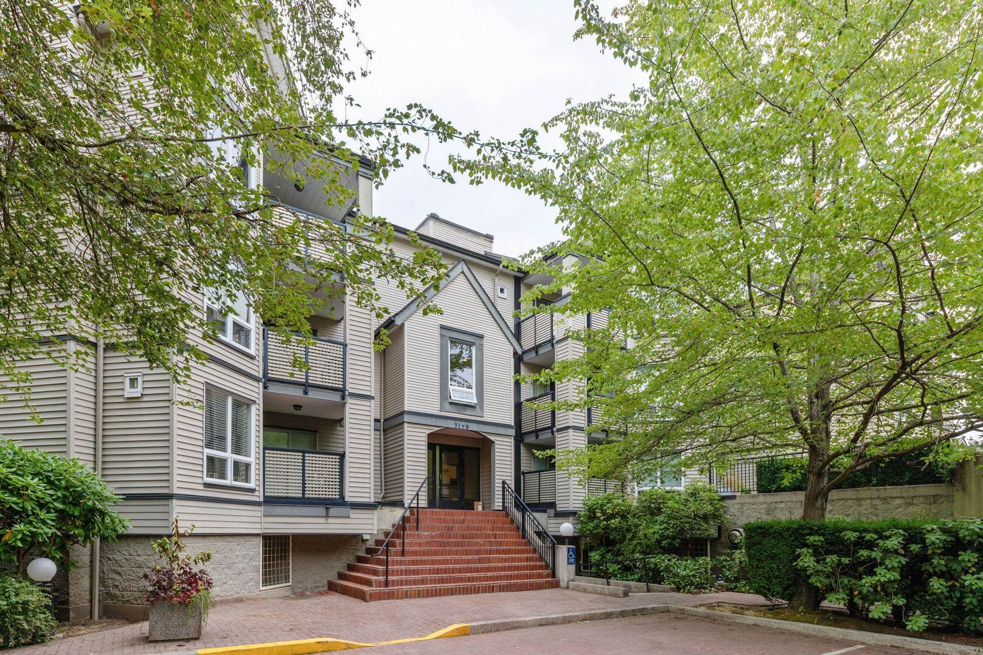 COLONY BAY. Updated and well maintained, spacious 3 bedroom corner home spanning 1,230SF. The kitchen features quartz counters, tiled backsplash, ample storage/prep space and sleek appliances and leads in the spacious, open concept living and dining spaces. Appreciate a cozy gas fireplace, large windows inviting peaceful, lush treeline views, upgraded window coverings and plush carpeting. The bathrooms feature updated vanities and fixtures and boast durable stone counters. Proactive strata with many building upgrades including full rainscreen and new windows, balcony railings and gutters etc. Includes 2 parking. Located close to Richmond Centre, transit, Minoru Park/Community Centre. School Catchment: Ferris Elementary and Richmond Secondary.