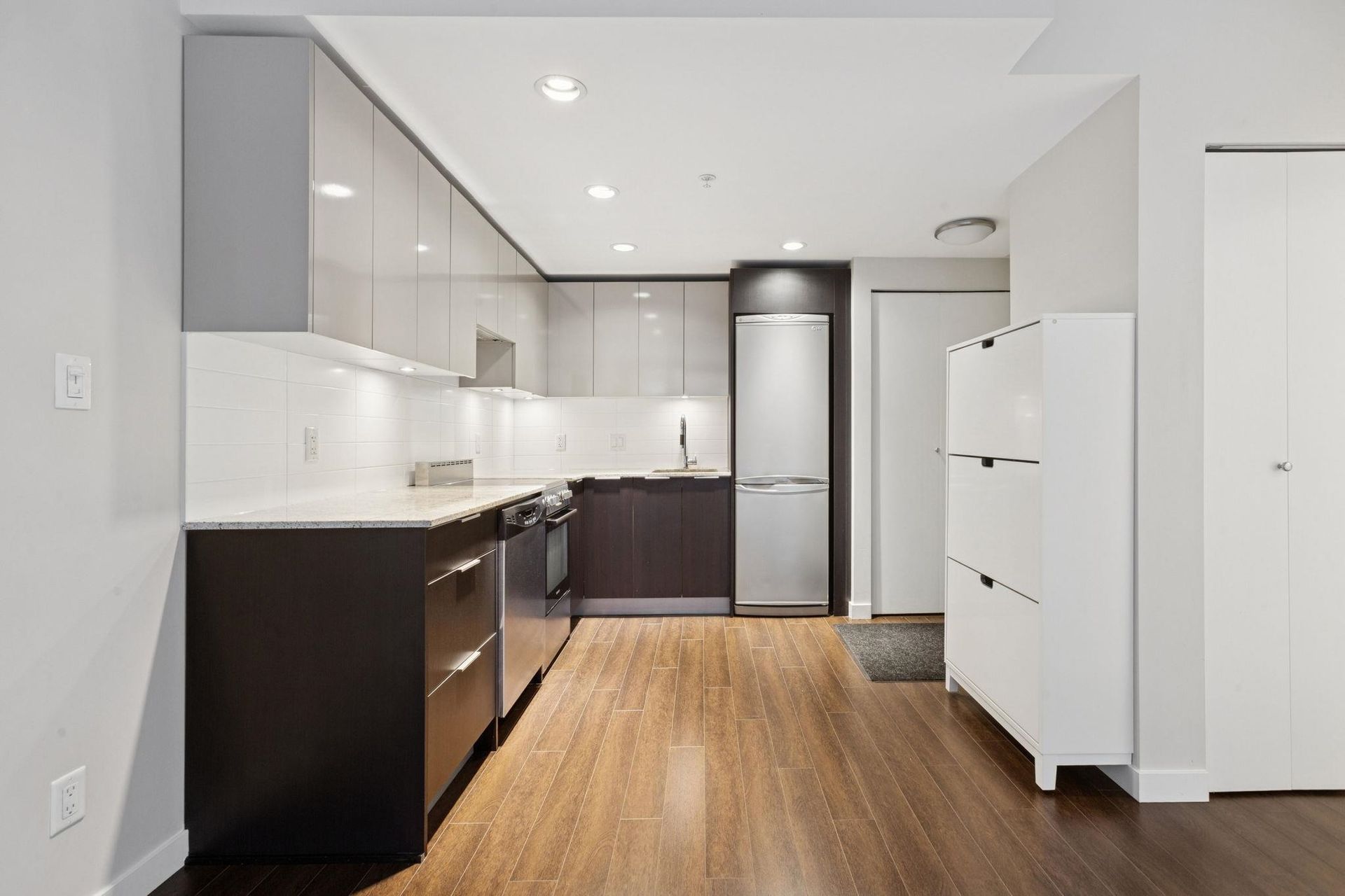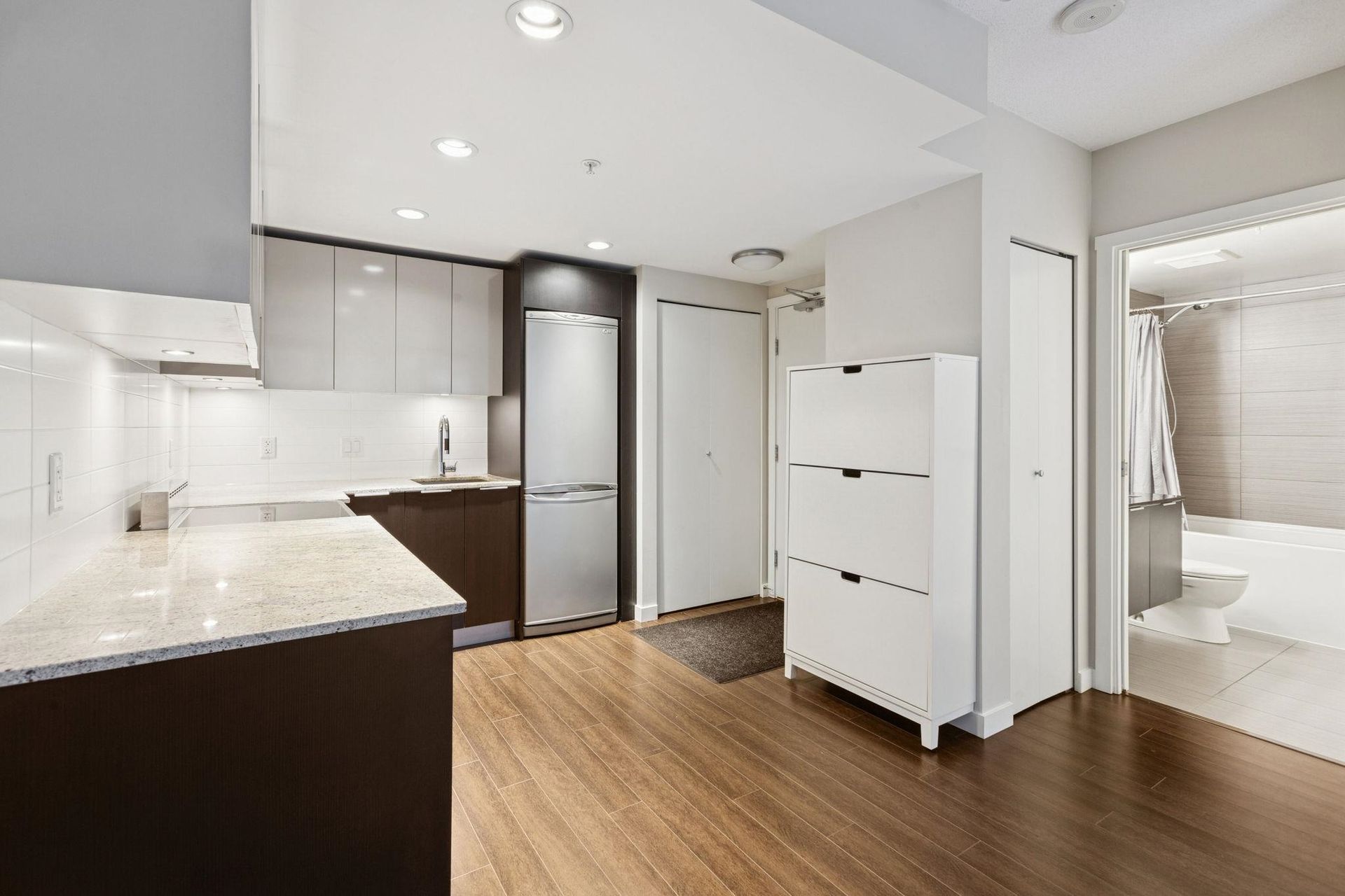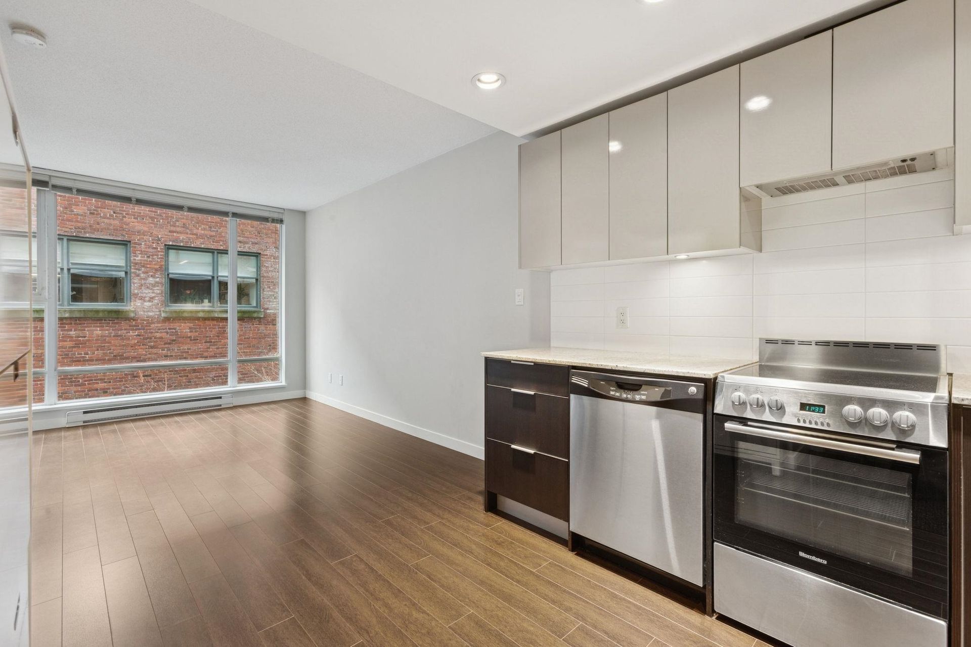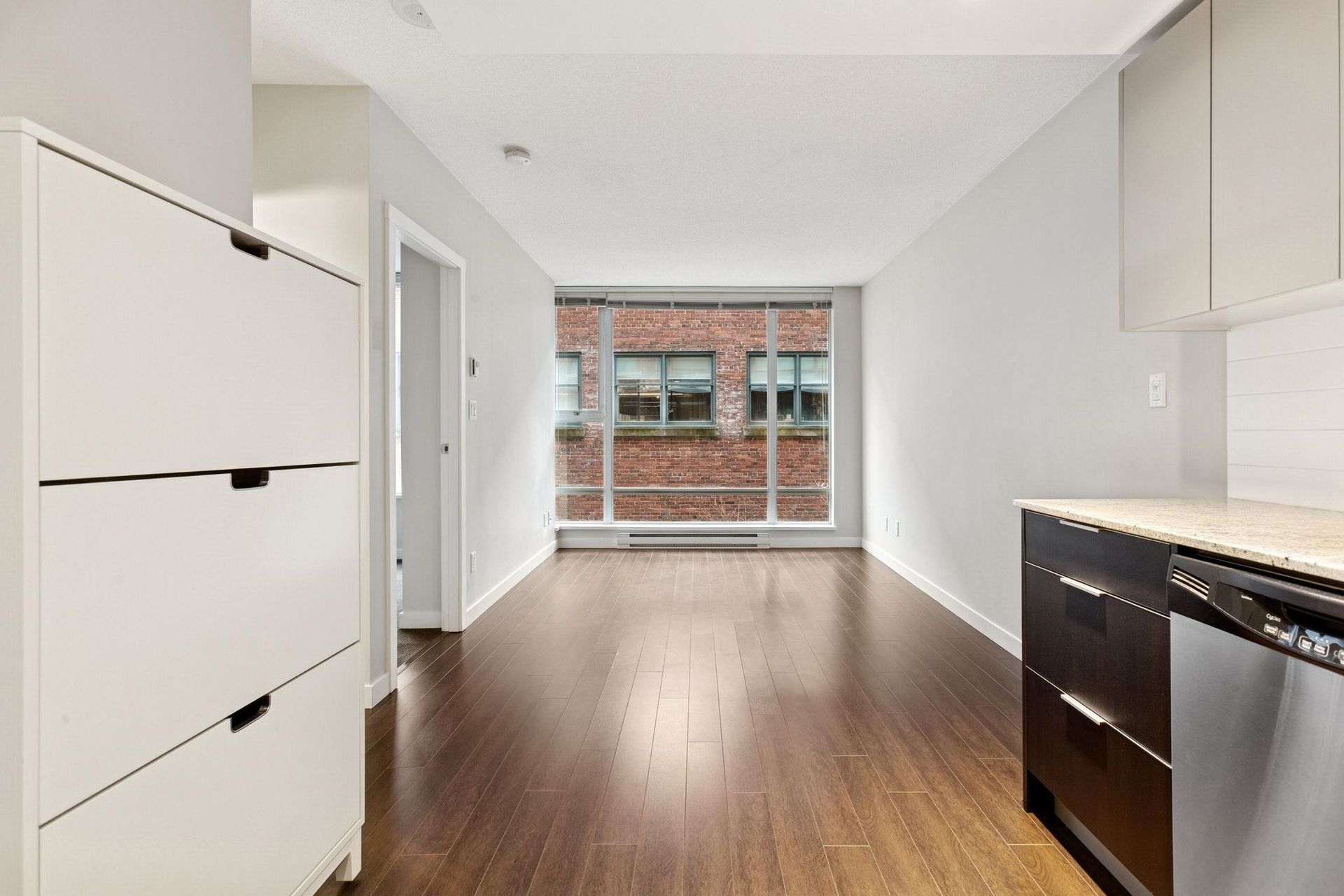 MAYNARD'S BLOCK BY AQUILINI. Super functional 1 bedroom home with parking -steps to EVERYTHING. This efficient home features a gourmet kitchen with sleek appliances, stone counters and contemporary cabinetry, flowing on durable laminate flooring into the open concept dining/living space and private bedroom. The bathroom features a soaker tub and vanity with ample storage. All of this in the most convenient location - just steps to the Canada Line, Cambie Village shopping (SaveOnFoods, BestBuy, Whole Foods), the Seawall, Olympic Village amenities (LondonDrugs, UrbanFare, Legacy), the Expo Line, Main Street shopping/eateries and craft breweries/bakeries. Building amenities include concierge and fitness centre. Includes 1 Parking & 1 Storage. ***OPEN HOUSE: SAT FEB 21 & SUN FEB 22 2-4PM***