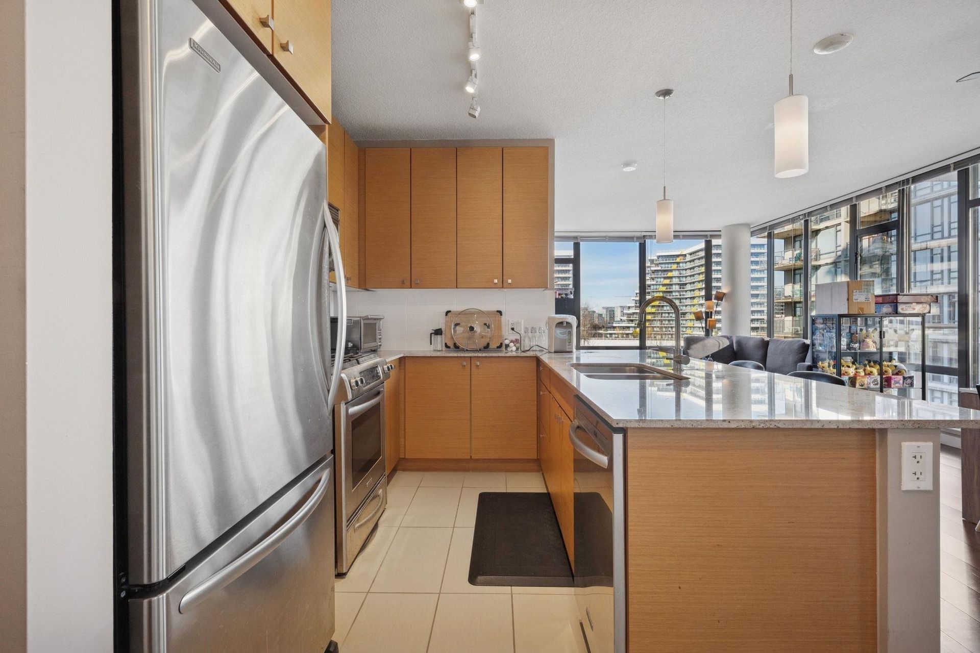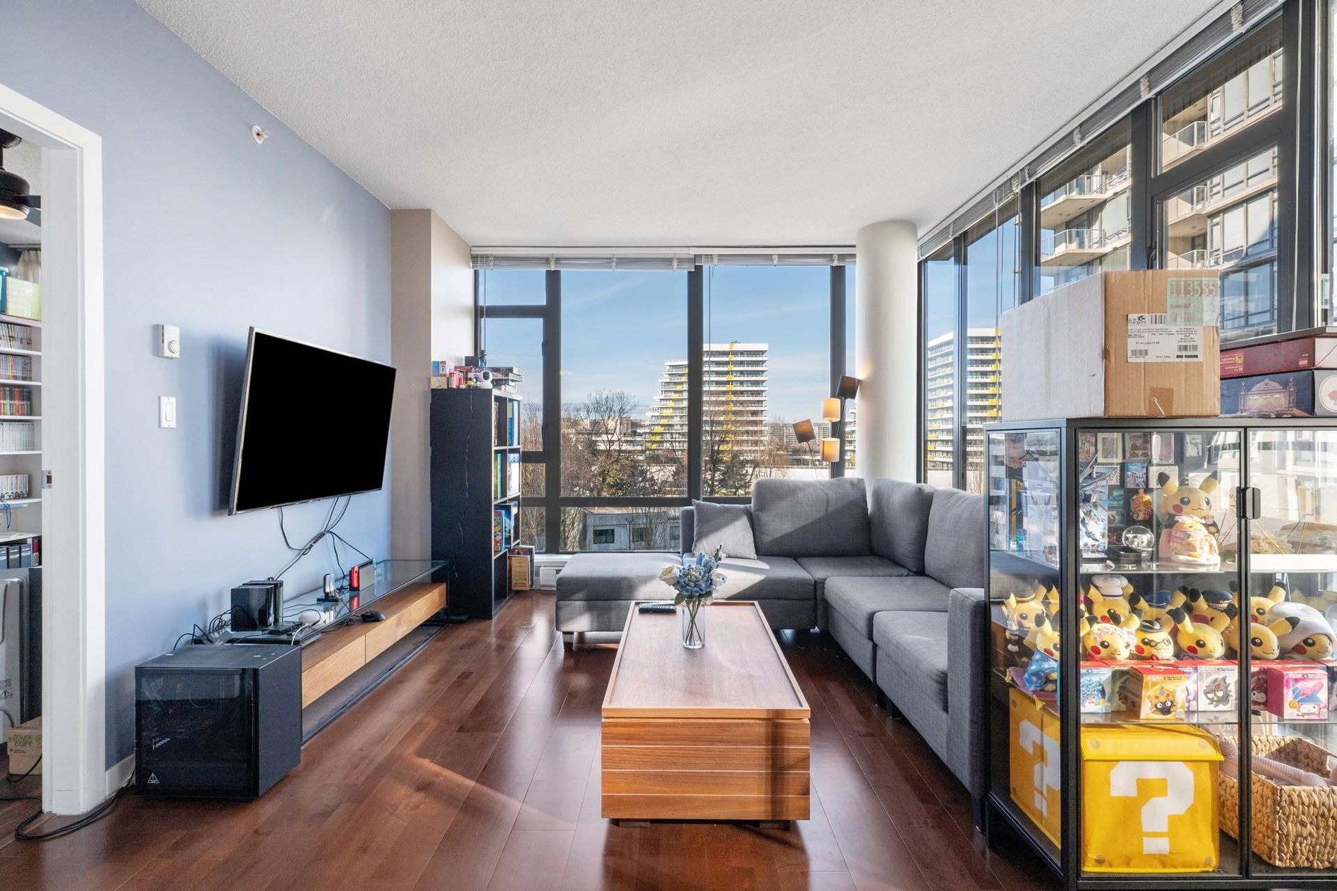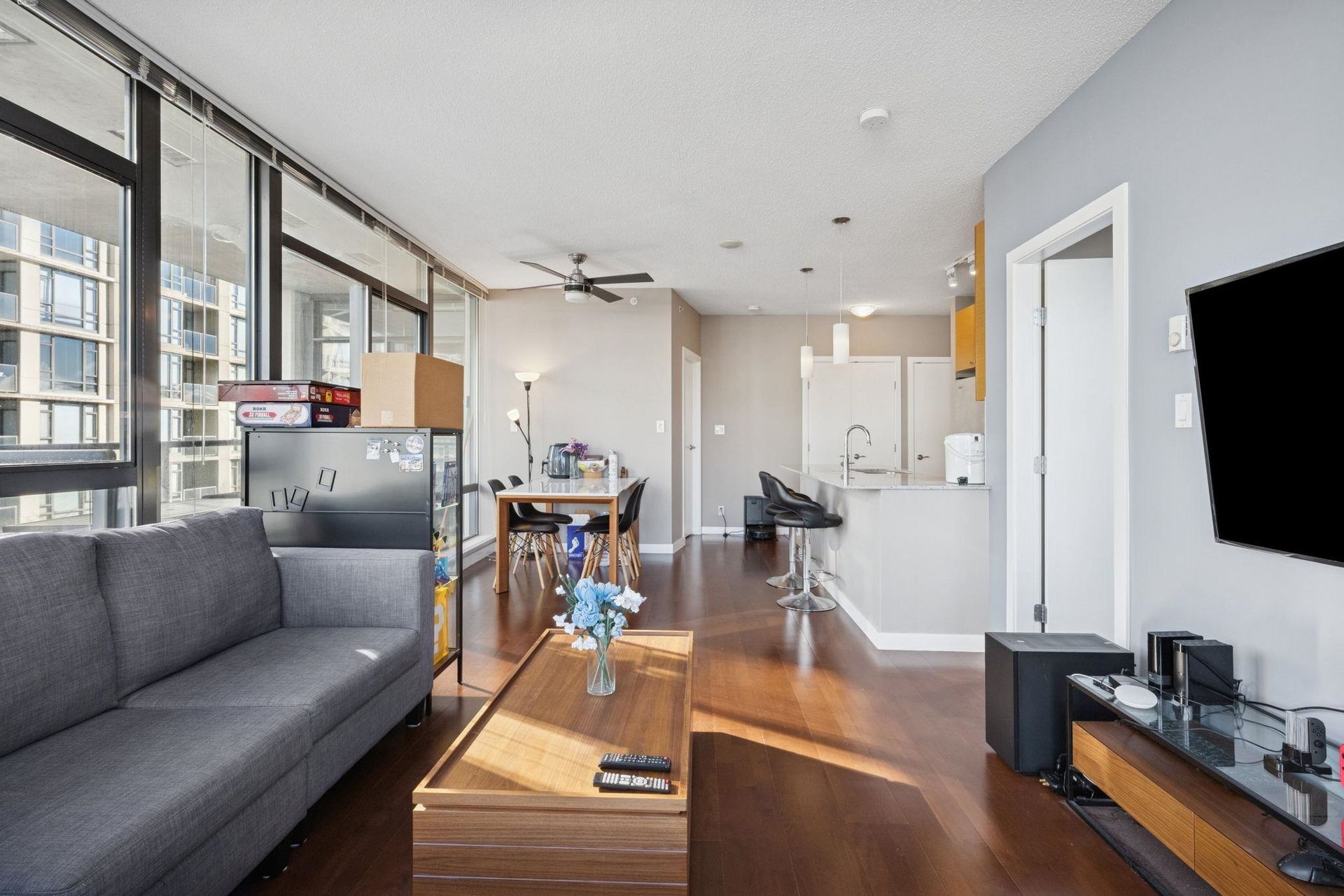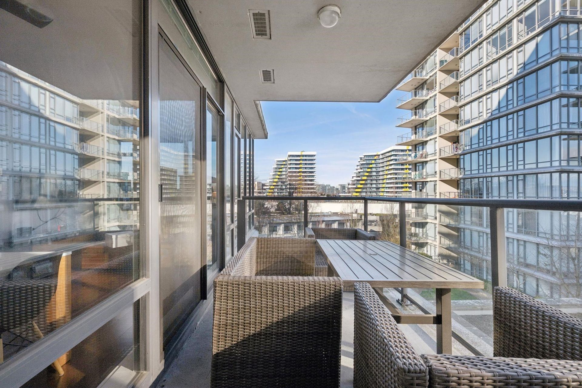 FLO by ONNI. Spacious, corner 2 bedroom home features floor to ceiling windows inviting sunset, city and mountain views! The gourmet kitchen features stone counters, stainless steel appliances, gas cooktop and plenty of storage space, flowing on hardwood flooring into the open concept living and dining areas. The oversized covered balcony extends your living space and provides beautiful al fresco dining. Appreciate private, separated, spacious bedrooms and two bathrooms with ample storage and rich marble countertops. Amenities incude fitness centre, swimming pool, hot tub/sauna and lounge/gardens. Walking distance to the Oval, Dyke trails, SkyTrain, T&T, shopping, eateries and much more. Includes tandem parking for 2 vehicles.