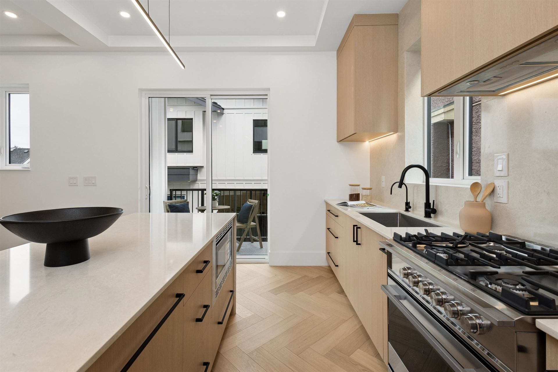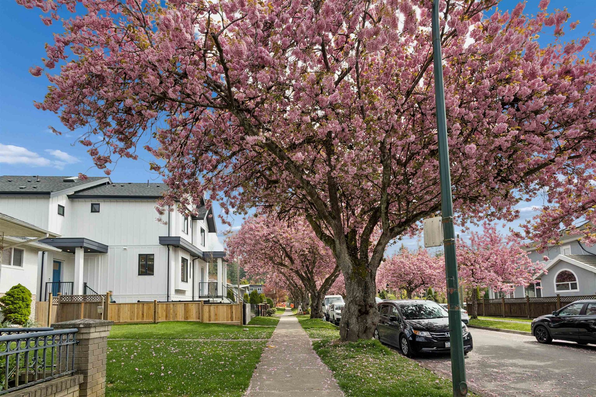 PARKSIDE RESIDENCES. You are immediately greeted by cherry blossoms, contemporary architecture and clean, modern design. This 4 bedroom home features a thoughtful and considered floorplan with unmatched finishing details. Main floor features white oak herringbone flooring, 10’ ceilings, built-ins and oversized windows to frame city & cherry blossom views. The kitchen is outfitted with integrated Fisher&Paykel appliances, quartz waterfall island, floor-to-ceiling white oak cabinetry and designer hardware. With 3 bedrooms up, this home is perfect for a growing family and downsizers. Bathrooms are clad in floor-to-ceiling tile and boast spacious vanities, quartz counters and designer fixtures and lighting. This home offers a potential 1 bedroom in-law suite downstairs with private entry.