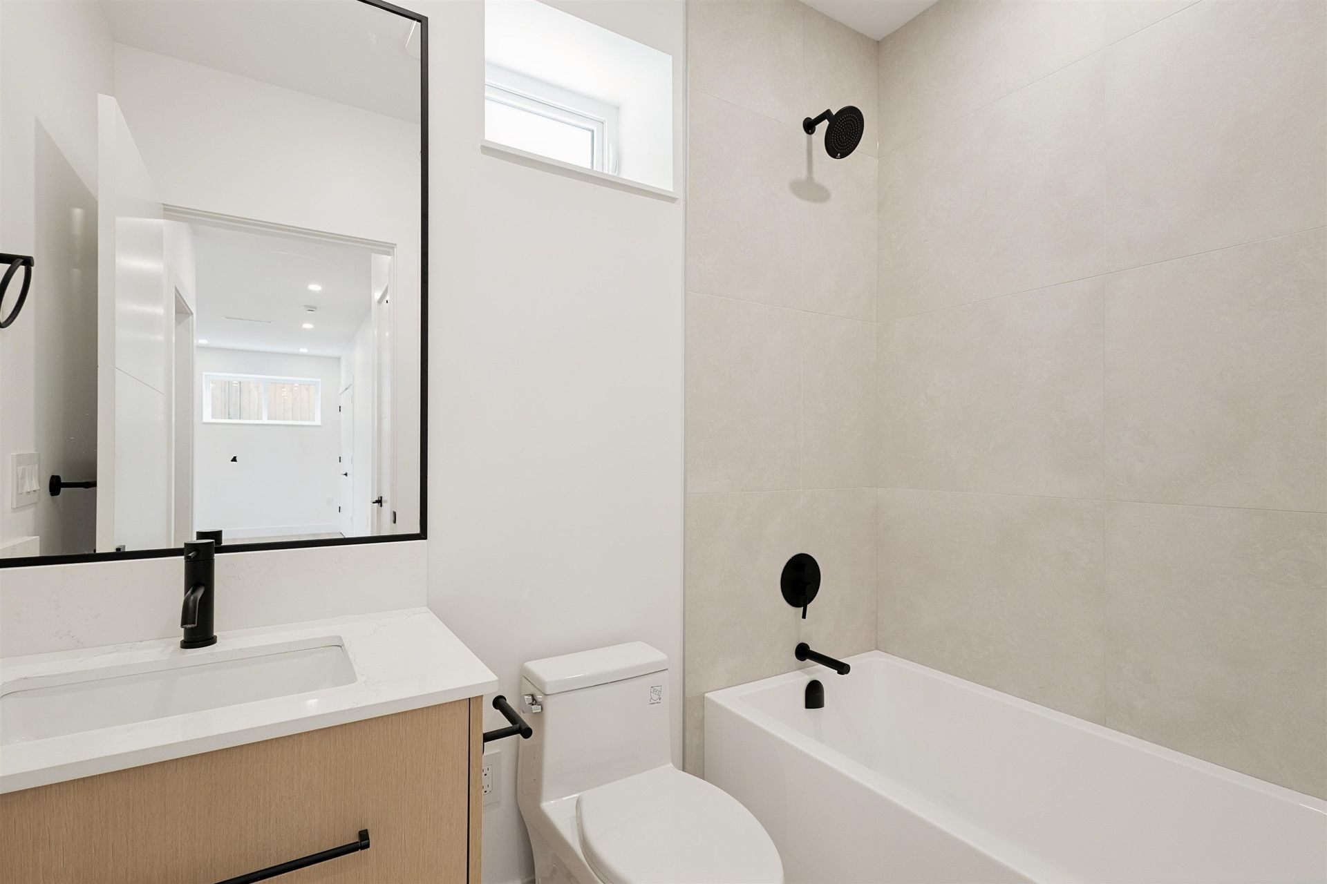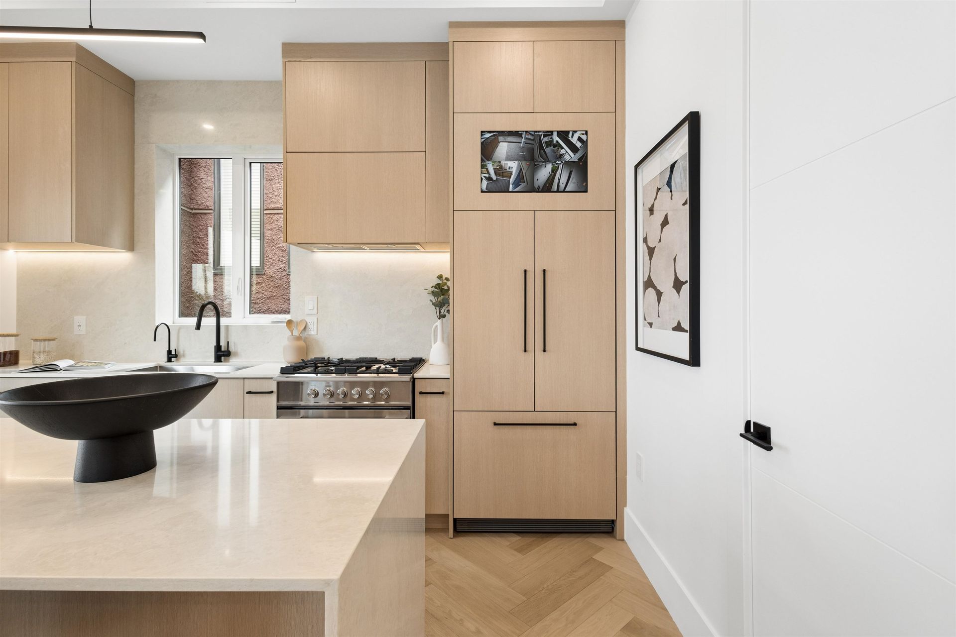 PARKSIDE RESIDENCES. You are immediately greeted by cherry blossoms, contemporary architecture and clean, modern design. This 4 bedroom home features a thoughtful and considered floorplan with unmatched finishing details. Main floor features white oak herringbone flooring, 10’ ceilings, built-ins and oversized windows to frame city, mountain & treeline views. The kitchen is outfitted with integrated Fisher&Paykel appliances, quartz waterfall island, floor-to-ceiling white oak cabinetry and designer hardware. With 3 bedrooms up, this home is perfect for a growing family and downsizers. Bathrooms are clad in floor-to-ceiling tile and boast spacious vanities, quartz counters and designer fixtures and lighting. This home offers a potential 1 bedroom in-law suite downstairs with private entry.