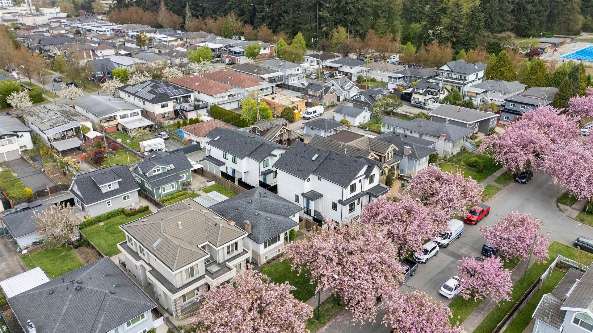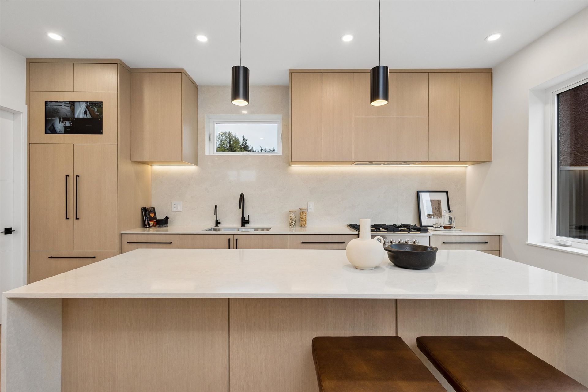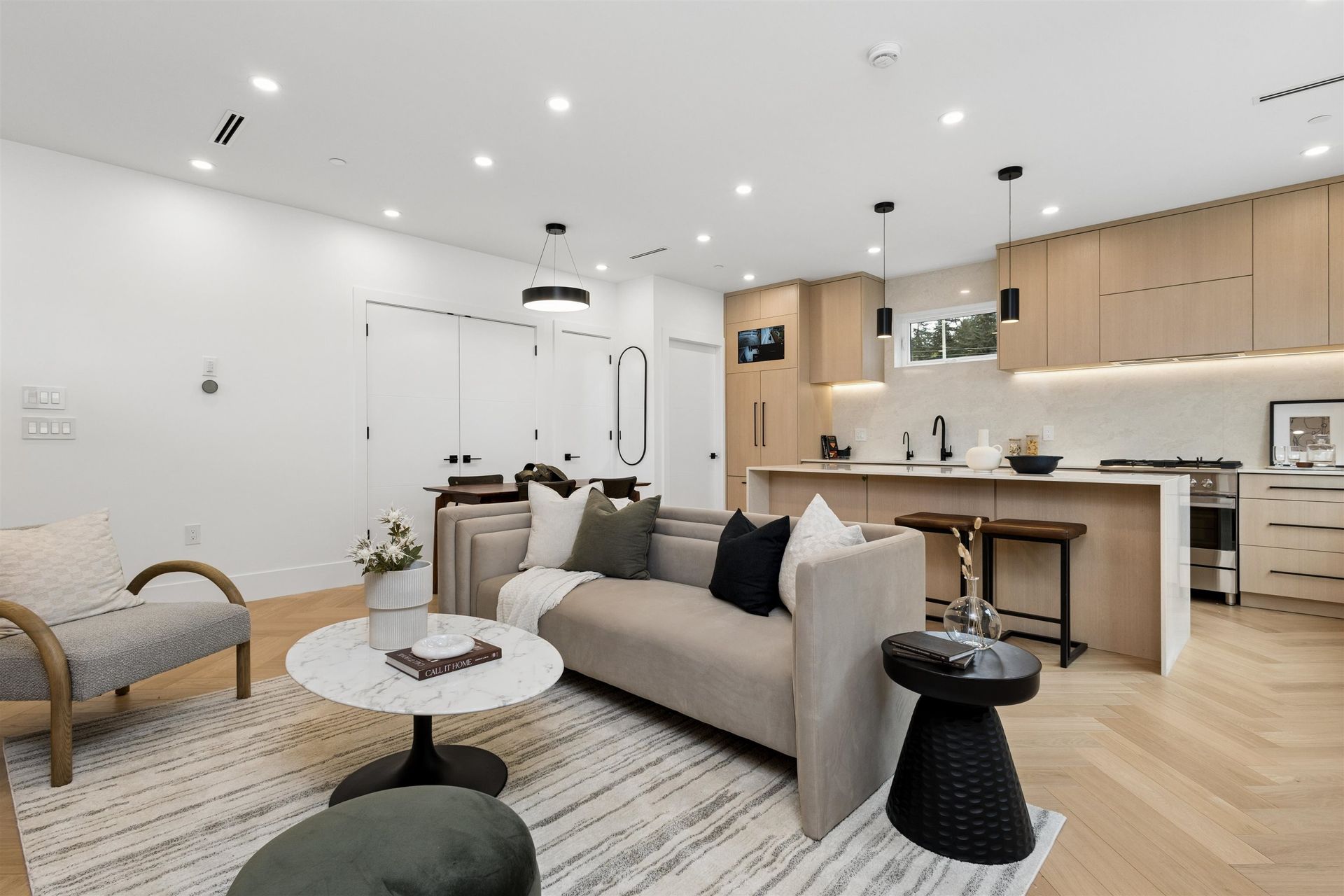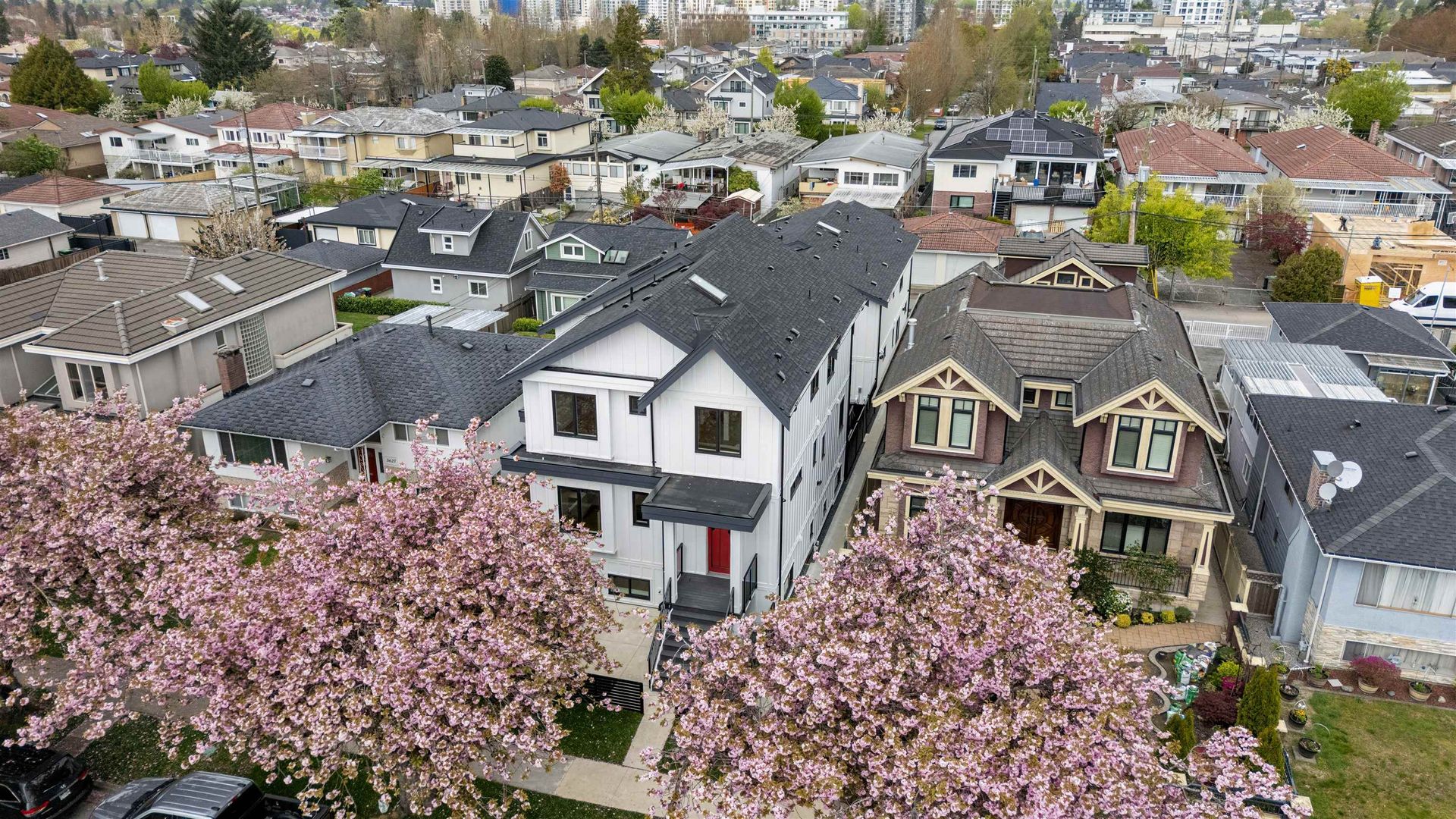 PARKSIDE RESIDENCES. You are immediately greeted by cherry blossoms, contemporary architecture and clean, modern design. This 3 bedroom home features a thoughtful and considered floorplan with unmatched finishing details. Main floor features white oak herringbone flooring, 9’ ceilings and oversized windows to frame city and treeline views. The kitchen is outfitted with integrated Fisher&Paykel appliances, quartz waterfall island, floor-to-ceiling white oak cabinetry and designer hardware. With 3 bedrooms up, this home is perfect for a growing family and downsizers. Bathrooms are clad in floor-to-ceiling tile and boast spacious vanities, quartz counters and designer fixtures and lighting. Appreciate custom white oak built-ins, storage solutions and air-conditioning.
