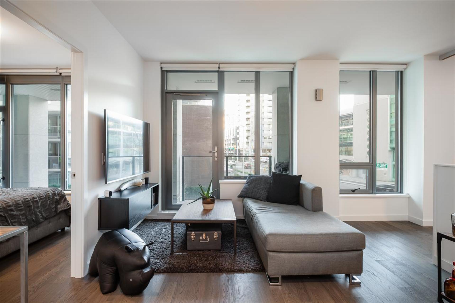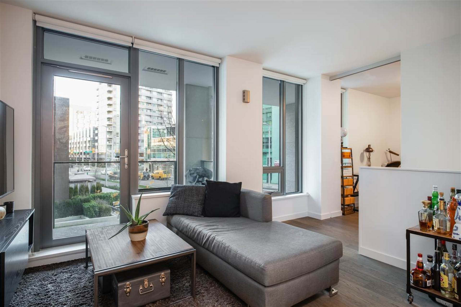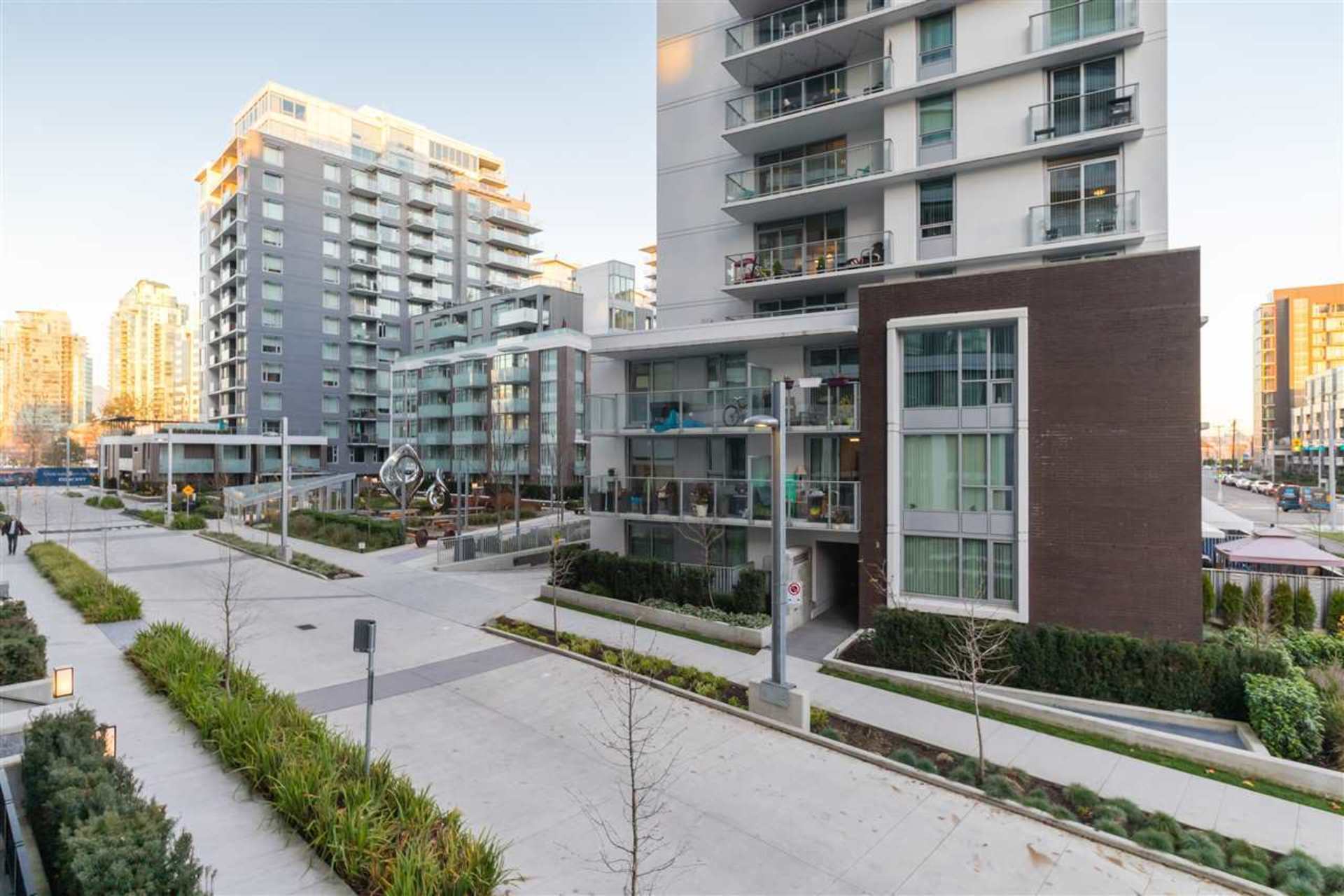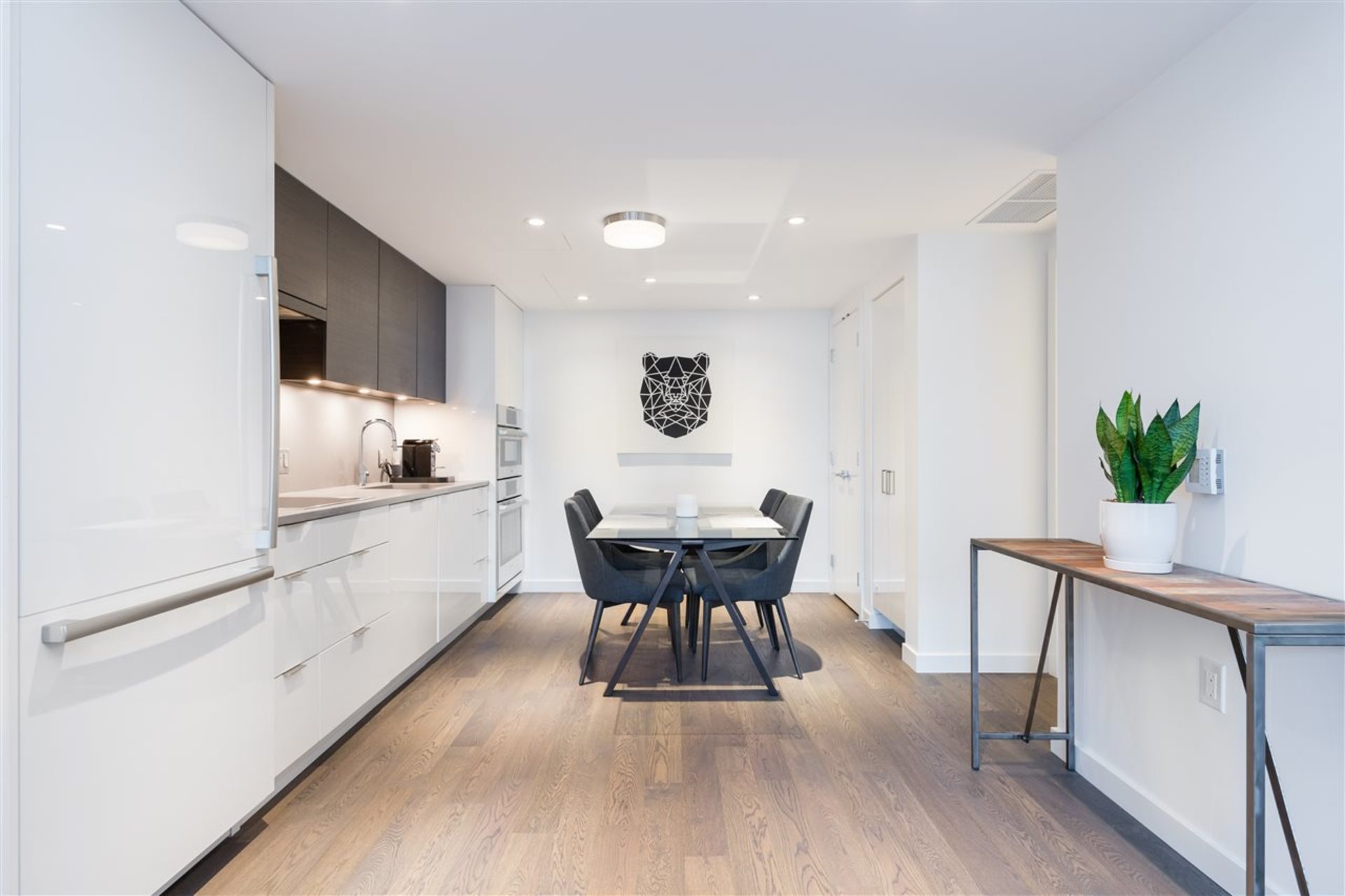 ELEGANT TOWNHOUSE LIVING in the most exciting location. Appreciate a true sense of arrival when you approach your private ground level entrance which leads into an a stunning, air-conditioned home. The functional floorpan features 2 separated bedrooms and an open living and dining room, all flowing on designer flooring. The stylish kitchen features full sized integrated Bosch appliances, Caesarstone counters and custom cabinetry. The spa-inspired bathroom boasts a floating vanity with plenty of storage space, separate tub and shower clad in marble print tile and radiant in-floor heating. All of this in the Olympic Village’s premier building - steps to the new 3 acre park and Seawall. Amenities include concierge, fitness centre, resident lounges with rooftop deck. 1 parking, 1 storage room.