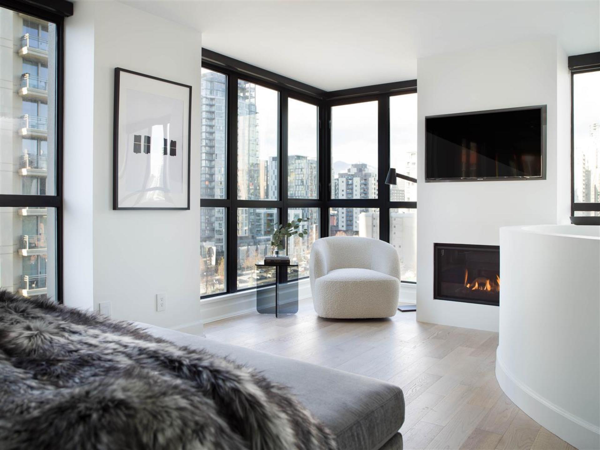 A HOME WORTHY OF THE COVER OF ARCHITECTURAL DIGEST - be the envy of all your friends. This stunning home has been meticulously redesigned guided by the principals of timeless design and function. Main floor features an exquisite kitchen with custom two toned cabinetry with bronze reveals, sleek appliances, Caesarstone counters and backsplash and a black marble clad hood fan. The expansive living and dining rooms are punctuated by a custom fireplace with hearth and 16.5' double height windows that invite park, city and mountain views. A custom handrail and intricate wall paneling lead to the master suite with custom paneling, a relaxing lounge, fireplace and an en-suite to admire - double head rain shower, Caesaestone counters, terrazzo tiles, imported plumbing fixtures and walk in closet.
